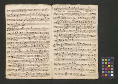 [pl-text: Brak partesu S.], [pl-text: Na górze k.tyt. ręką kopisty zapis: "N|r|o 2u[nieczytelne].", [pl-textL U dołu k.tyt. zapis czerwoną kredką: "N. 1.", [pl-text: U doły k.tyt., wpoprzek zapis ręką kopisty: "Pastor | Pastor".], [pl-text: Na II stronie okładki okrągła pieczęć: "ARCHIWUM i BIBLIOTEKA | Krakowskiej Kapituły Katedralnej".], [pl-text: Na f. 10r i 20r, nad nutami, ręką skryptora zapis: "Brixi".], [pl-textL Na f. 37 r. w różnych miejscach próbki pisma, m.in.: "con | Organo", "Bas", "Dobrodziki".], [pl-text: Na wybranych folio owalna pieczęć: „CATH. CRAC. * ARCH. CAPIT.”], [pl-text: Foliacja dopisana ołówkiem.]