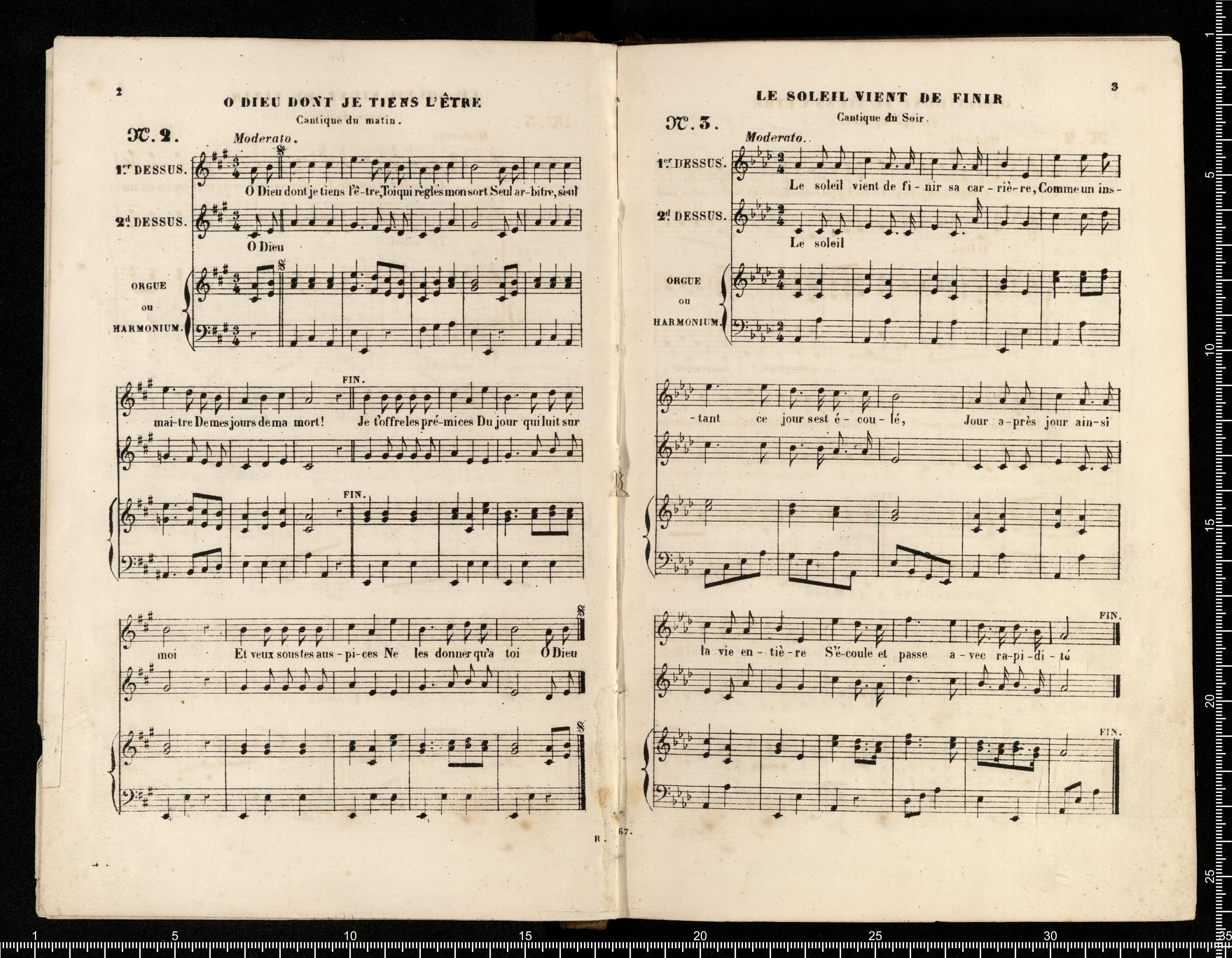 [cover - without title] [title page:] RECUEIL | DE | CANTIQUES | connus | à l'usage des Cathéchismes, | et arrangés | POUR DEUX VOIX ÉGALES | avec accompag(t). | d'Orgue ou de Piano ou d'Harmonium | PAR | L.DIETSCH | Maitre de Chapelle de l'Eglise de la Madeleine. | A.J. | Prix net: 8(F). | N(ta). Le même Recueil est aussi gravé sans accompagnement | Prix net: 2(F). | Paris, S.RICHAULT, Editeur, Boulevart Poissonnière, 26, au 1(er). | et chez M. DEVARENNES, Libraire, F(rg). S(t). Honoré, 14. | 11,267.R