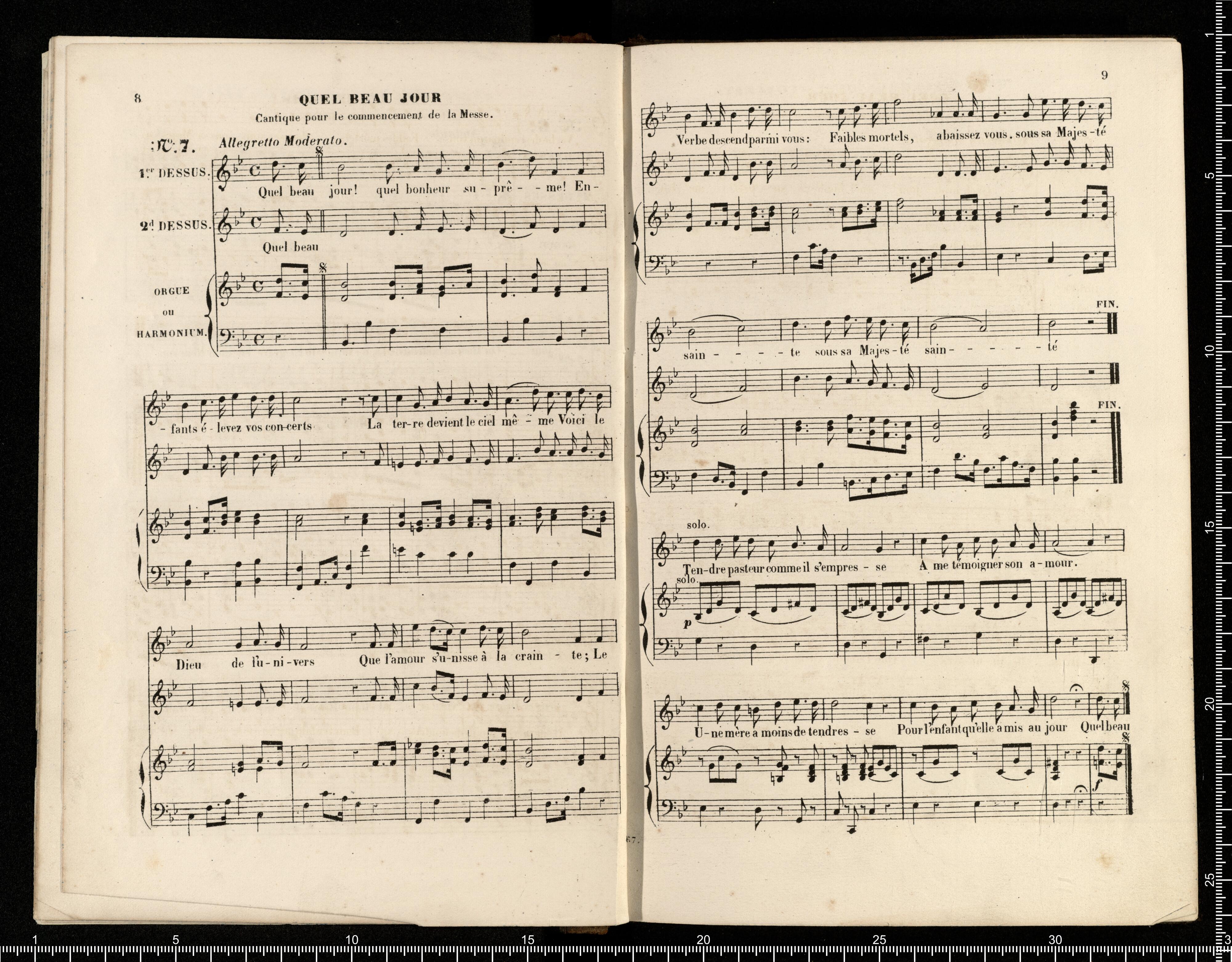 [cover - without title] [title page:] RECUEIL | DE | CANTIQUES | connus | à l'usage des Cathéchismes, | et arrangés | POUR DEUX VOIX ÉGALES | avec accompag(t). | d'Orgue ou de Piano ou d'Harmonium | PAR | L.DIETSCH | Maitre de Chapelle de l'Eglise de la Madeleine. | A.J. | Prix net: 8(F). | N(ta). Le même Recueil est aussi gravé sans accompagnement | Prix net: 2(F). | Paris, S.RICHAULT, Editeur, Boulevart Poissonnière, 26, au 1(er). | et chez M. DEVARENNES, Libraire, F(rg). S(t). Honoré, 14. | 11,267.R