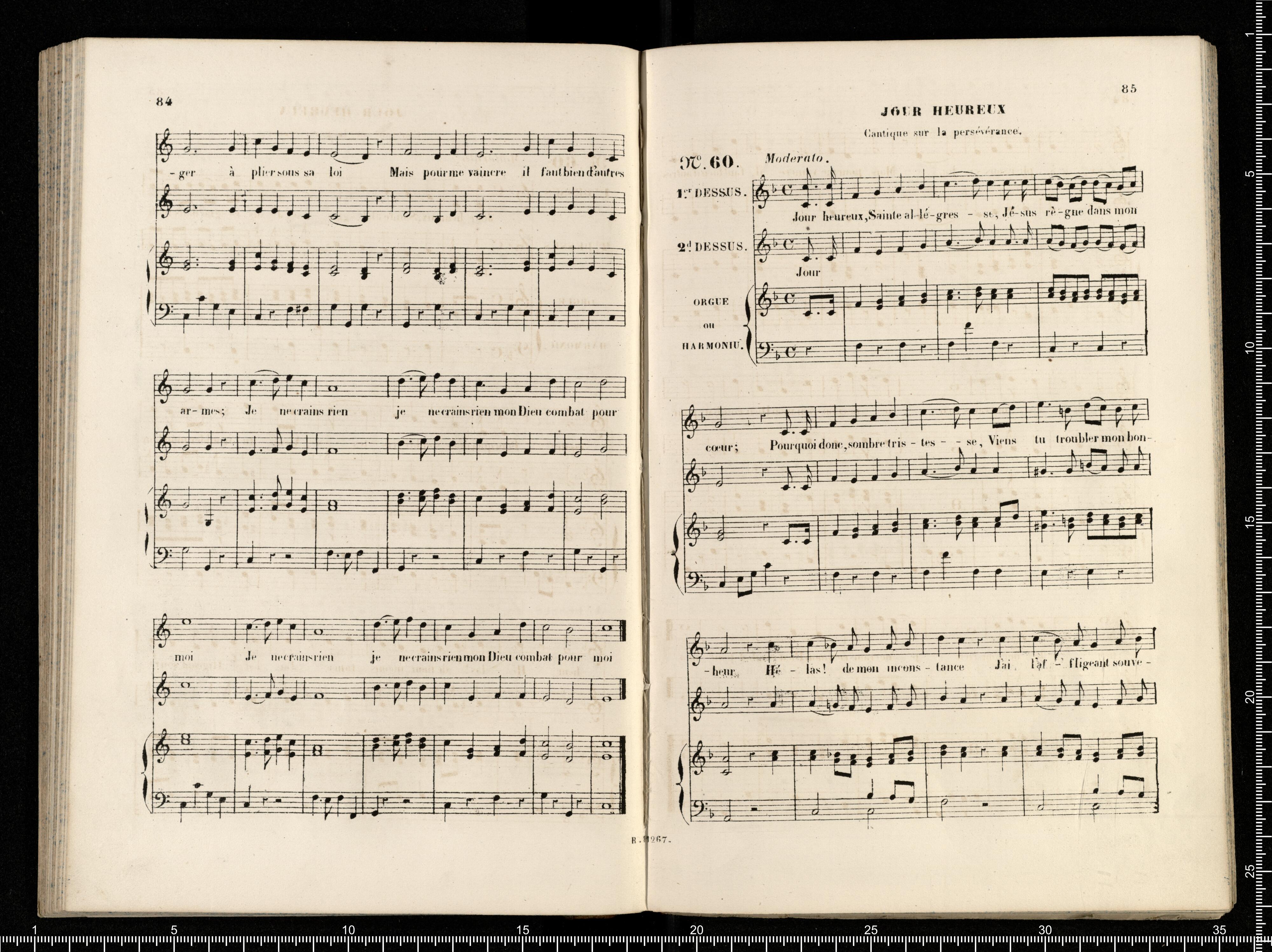 [cover - without title] [title page:] RECUEIL | DE | CANTIQUES | connus | à l'usage des Cathéchismes, | et arrangés | POUR DEUX VOIX ÉGALES | avec accompag(t). | d'Orgue ou de Piano ou d'Harmonium | PAR | L.DIETSCH | Maitre de Chapelle de l'Eglise de la Madeleine. | A.J. | Prix net: 8(F). | N(ta). Le même Recueil est aussi gravé sans accompagnement | Prix net: 2(F). | Paris, S.RICHAULT, Editeur, Boulevart Poissonnière, 26, au 1(er). | et chez M. DEVARENNES, Libraire, F(rg). S(t). Honoré, 14. | 11,267.R