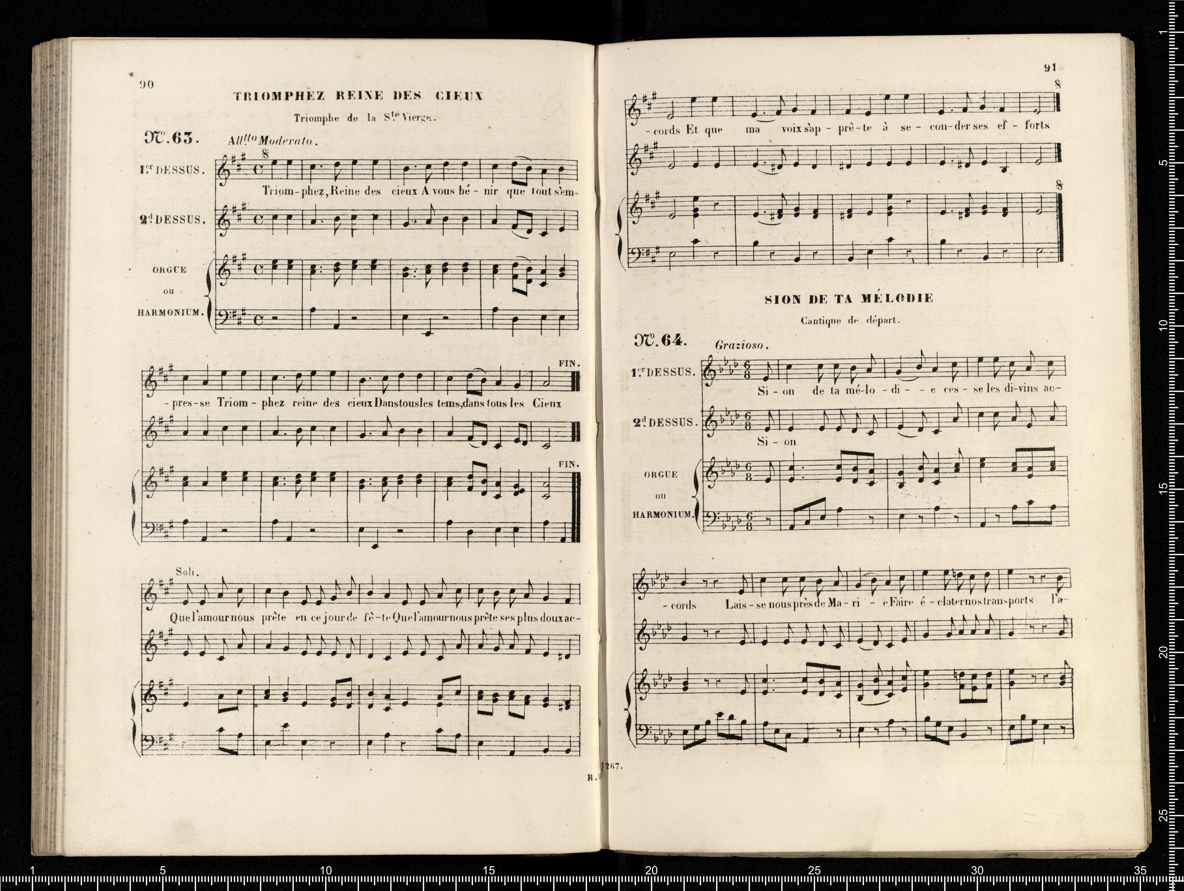 [cover - without title] [title page:] RECUEIL | DE | CANTIQUES | connus | à l'usage des Cathéchismes, | et arrangés | POUR DEUX VOIX ÉGALES | avec accompag(t). | d'Orgue ou de Piano ou d'Harmonium | PAR | L.DIETSCH | Maitre de Chapelle de l'Eglise de la Madeleine. | A.J. | Prix net: 8(F). | N(ta). Le même Recueil est aussi gravé sans accompagnement | Prix net: 2(F). | Paris, S.RICHAULT, Editeur, Boulevart Poissonnière, 26, au 1(er). | et chez M. DEVARENNES, Libraire, F(rg). S(t). Honoré, 14. | 11,267.R