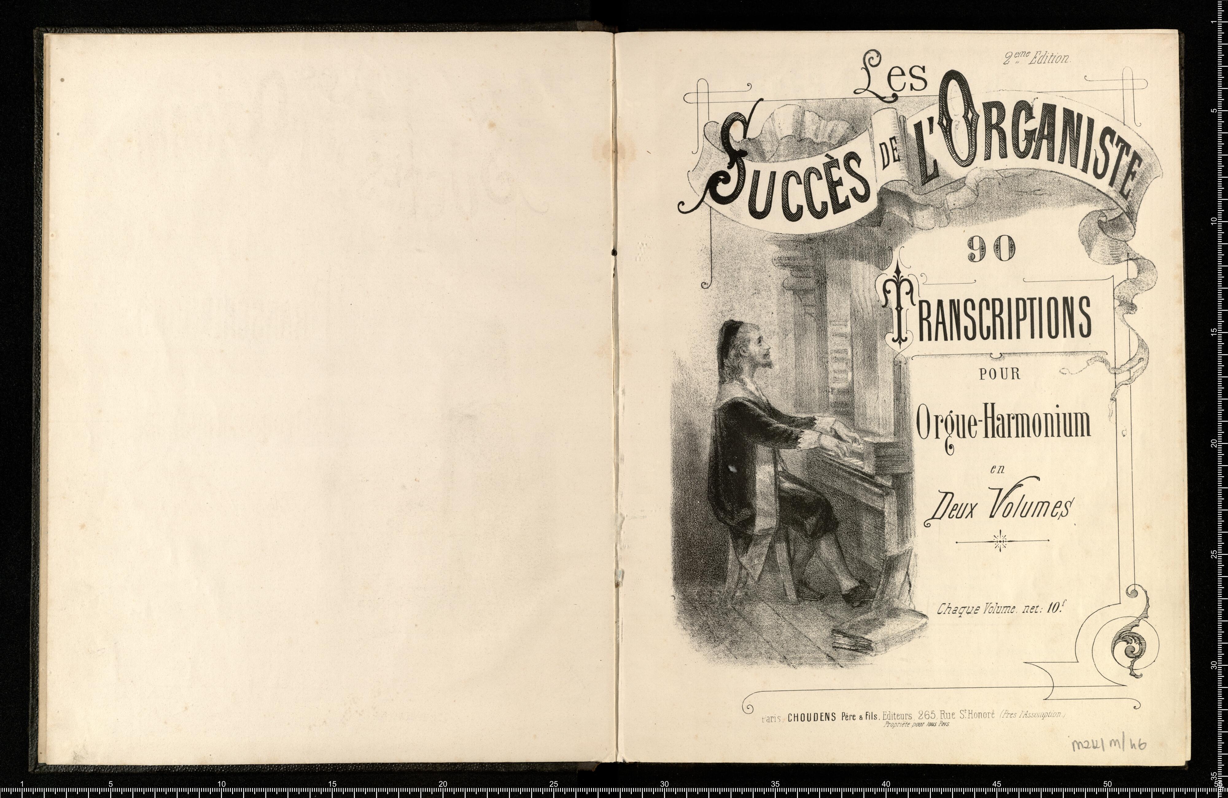 Les 2(eme),, Edition | Succès de l'Organiste | 90 | Transcriptions | POUR | Orgue-Harmonium | en Deux Volumes | Chaque Volume. net.: 10(F). | Paris, CHOUDENS Père & Fils, Editeurs, 265, Rue S(t).Honoré (Pres l'Assomption.) | Pripriété pour tous Pays