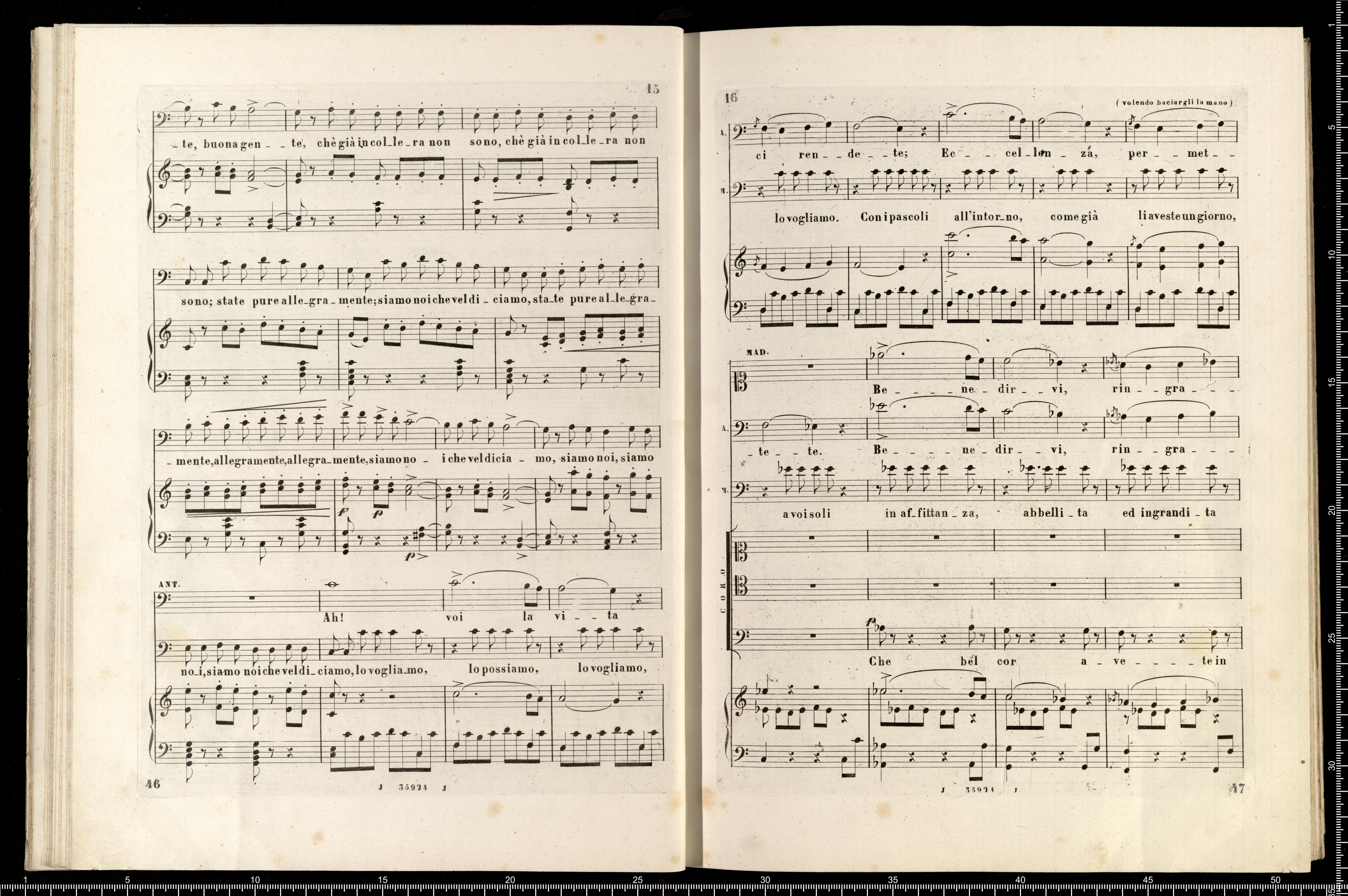 [cover - without title] [title page:] LINDA DI CHAMOUNIX | MELODRAMMA IN TRE ATTI DI G. ROSSI | posto in musica ed umilimente dedicato a S. M. | MARIA ANNA CAROLINA | Imperatrice d'Austria, Regina di Boemia, ecc., ecc. | DA | GAETANO DONIZETTI | Maestro di Cappella di Camera e Compisitore di Corte di S. M. l'Omperatore d'Austria. | RAPPRENENTATO PER LA PRIMA VOLTA AL TEATRO DI PORTA CARINZIA IN VIENNA | LA PRIMAVERA 1842 | RIDUZIONE PER CANTO E PIANOFORTE | NUOVA EDIZIONE RIVEDUTA | coi pezzi aggiunti dall'Autore a Parigi | Proprietà dell'Editore Fr. 36 - | R. Stabilimento Musicale Ricordi | MILANO | NAPOLI - ROMA - FIRENZE