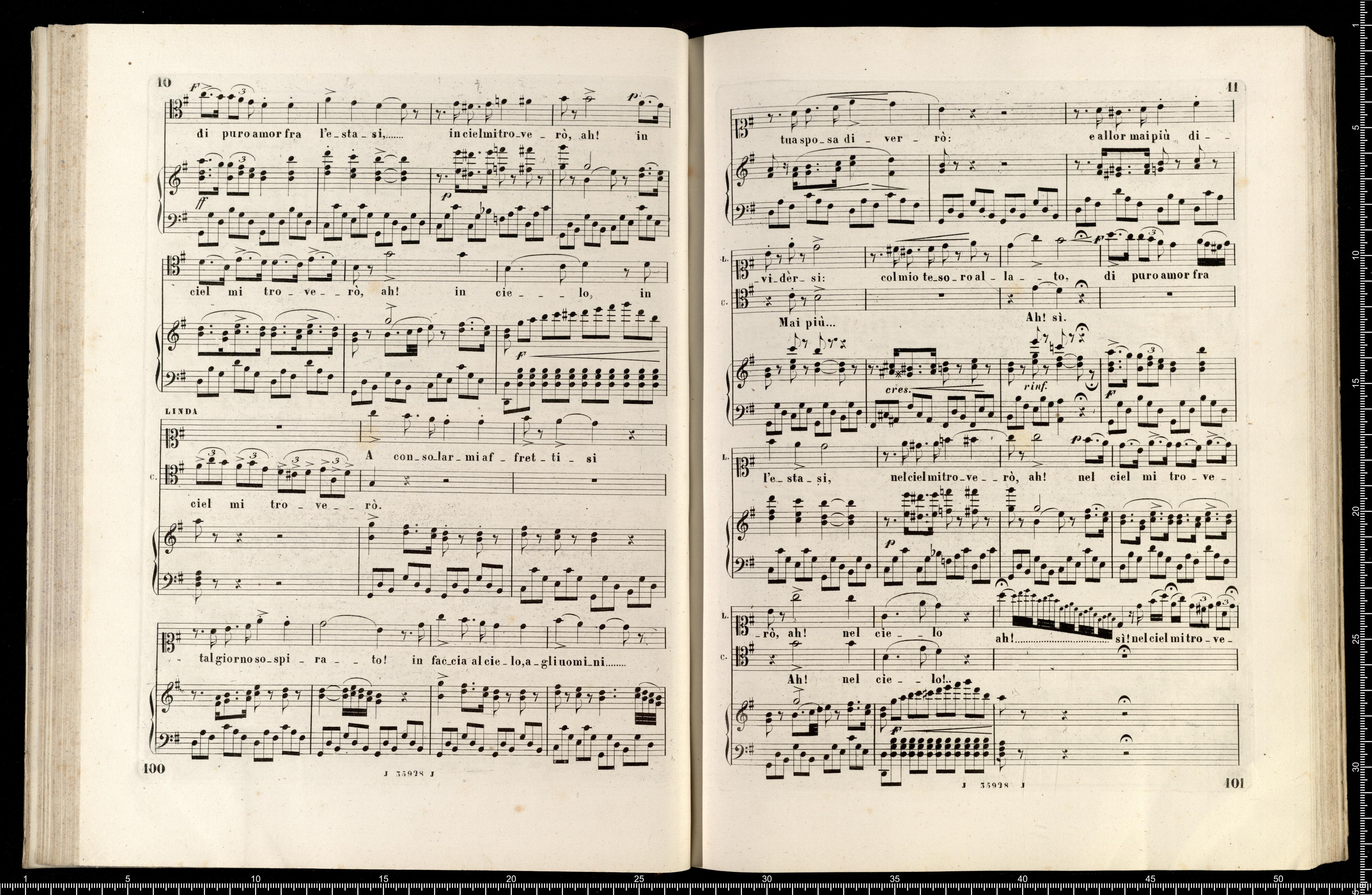 [cover - without title] [title page:] LINDA DI CHAMOUNIX | MELODRAMMA IN TRE ATTI DI G. ROSSI | posto in musica ed umilimente dedicato a S. M. | MARIA ANNA CAROLINA | Imperatrice d'Austria, Regina di Boemia, ecc., ecc. | DA | GAETANO DONIZETTI | Maestro di Cappella di Camera e Compisitore di Corte di S. M. l'Omperatore d'Austria. | RAPPRENENTATO PER LA PRIMA VOLTA AL TEATRO DI PORTA CARINZIA IN VIENNA | LA PRIMAVERA 1842 | RIDUZIONE PER CANTO E PIANOFORTE | NUOVA EDIZIONE RIVEDUTA | coi pezzi aggiunti dall'Autore a Parigi | Proprietà dell'Editore Fr. 36 - | R. Stabilimento Musicale Ricordi | MILANO | NAPOLI - ROMA - FIRENZE
