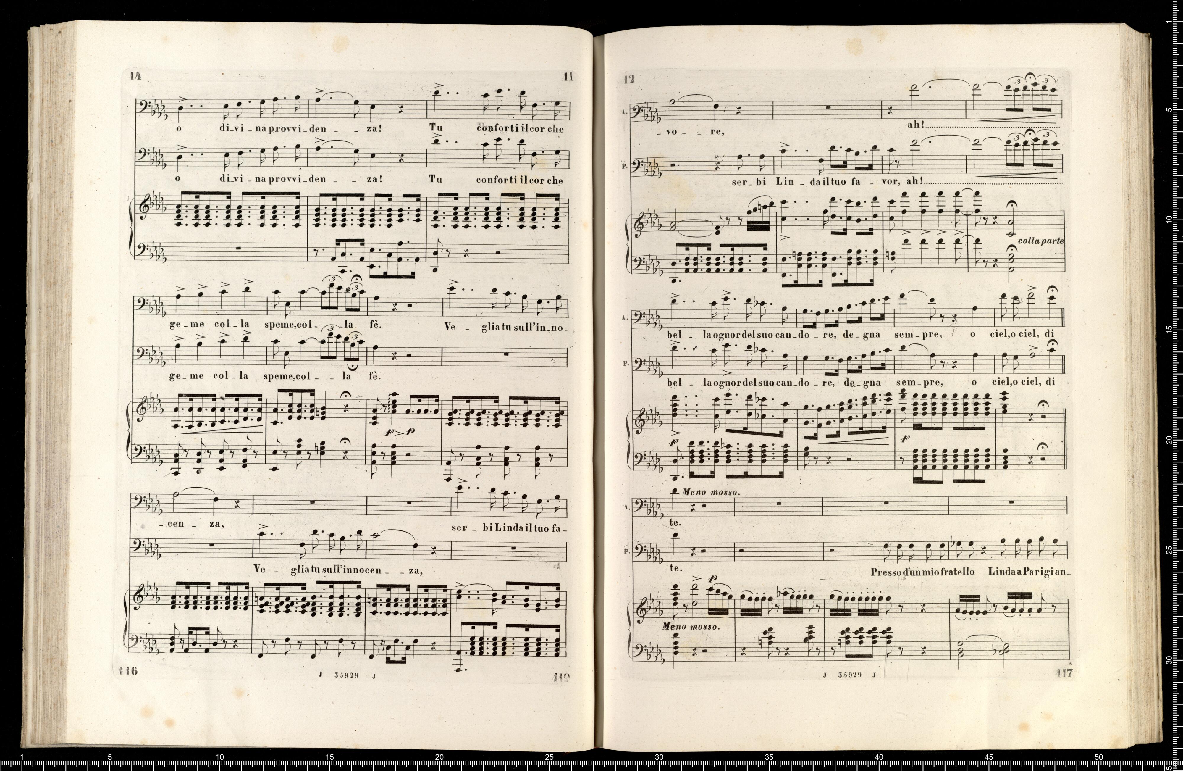 [cover - without title] [title page:] LINDA DI CHAMOUNIX | MELODRAMMA IN TRE ATTI DI G. ROSSI | posto in musica ed umilimente dedicato a S. M. | MARIA ANNA CAROLINA | Imperatrice d'Austria, Regina di Boemia, ecc., ecc. | DA | GAETANO DONIZETTI | Maestro di Cappella di Camera e Compisitore di Corte di S. M. l'Omperatore d'Austria. | RAPPRENENTATO PER LA PRIMA VOLTA AL TEATRO DI PORTA CARINZIA IN VIENNA | LA PRIMAVERA 1842 | RIDUZIONE PER CANTO E PIANOFORTE | NUOVA EDIZIONE RIVEDUTA | coi pezzi aggiunti dall'Autore a Parigi | Proprietà dell'Editore Fr. 36 - | R. Stabilimento Musicale Ricordi | MILANO | NAPOLI - ROMA - FIRENZE