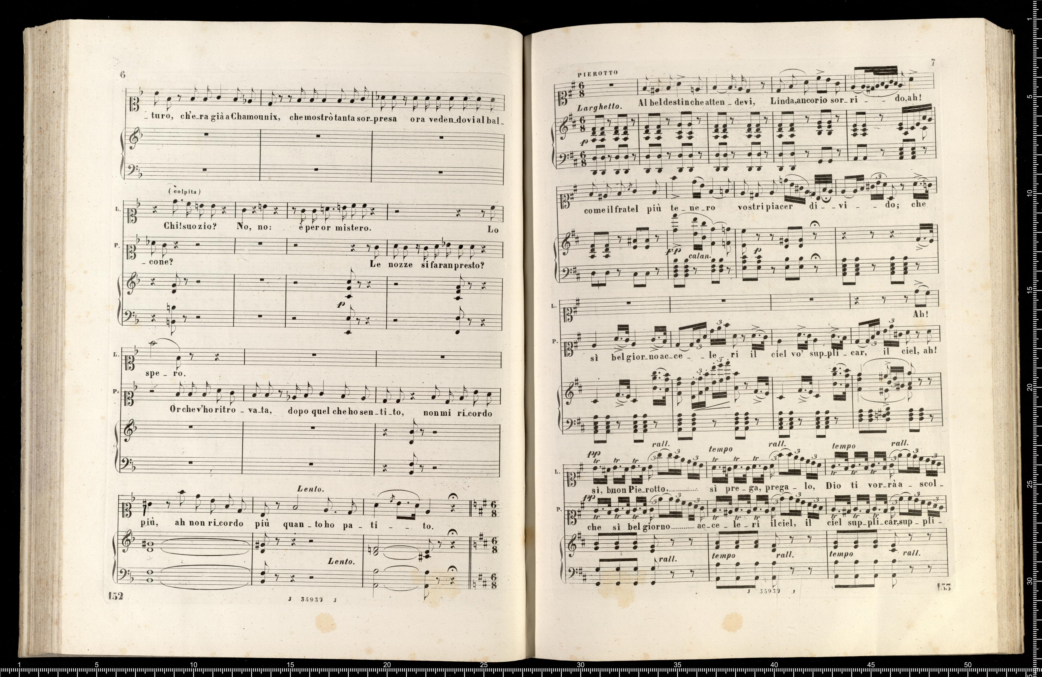 [cover - without title] [title page:] LINDA DI CHAMOUNIX | MELODRAMMA IN TRE ATTI DI G. ROSSI | posto in musica ed umilimente dedicato a S. M. | MARIA ANNA CAROLINA | Imperatrice d'Austria, Regina di Boemia, ecc., ecc. | DA | GAETANO DONIZETTI | Maestro di Cappella di Camera e Compisitore di Corte di S. M. l'Omperatore d'Austria. | RAPPRENENTATO PER LA PRIMA VOLTA AL TEATRO DI PORTA CARINZIA IN VIENNA | LA PRIMAVERA 1842 | RIDUZIONE PER CANTO E PIANOFORTE | NUOVA EDIZIONE RIVEDUTA | coi pezzi aggiunti dall'Autore a Parigi | Proprietà dell'Editore Fr. 36 - | R. Stabilimento Musicale Ricordi | MILANO | NAPOLI - ROMA - FIRENZE