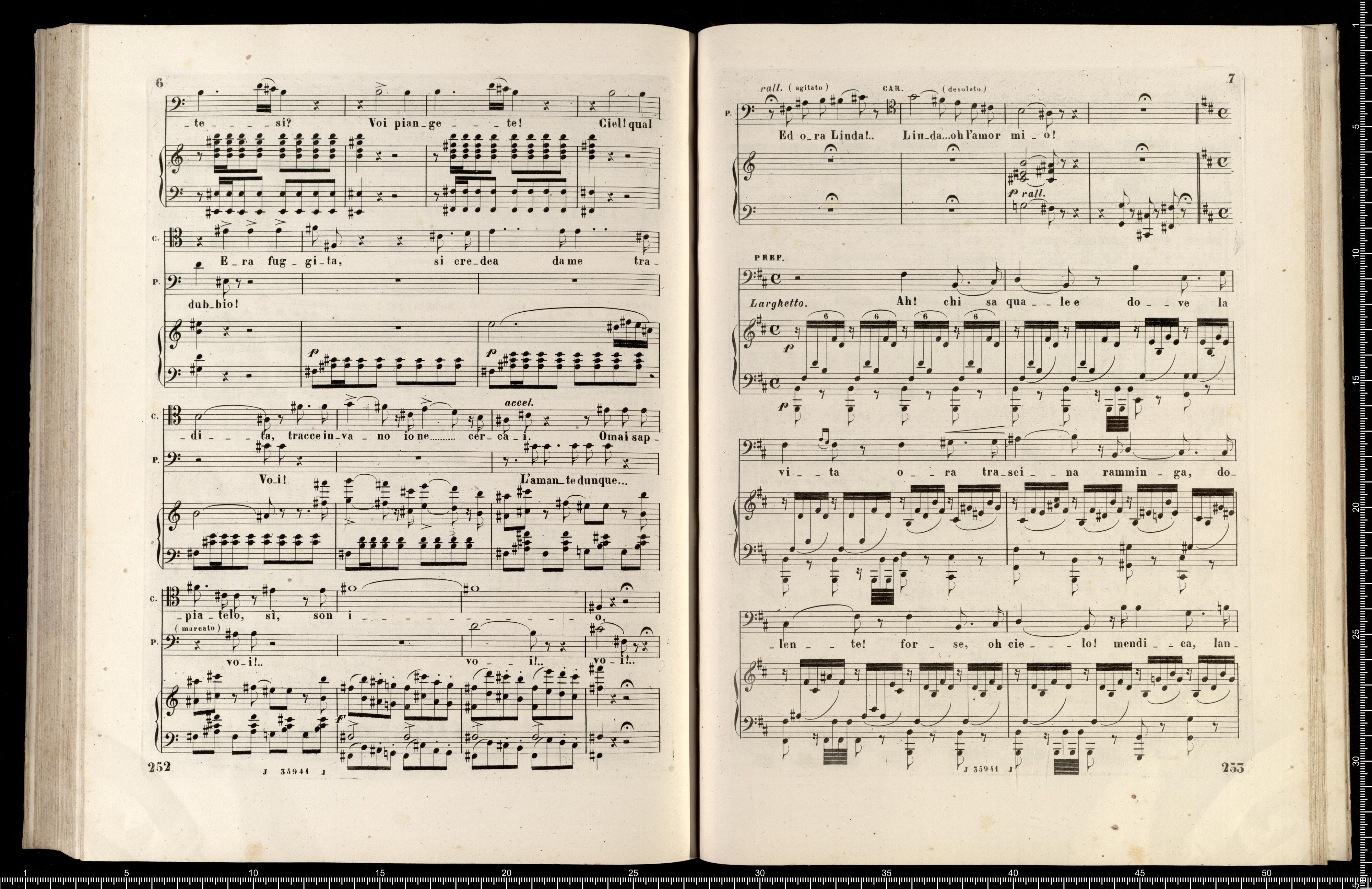 [cover - without title] [title page:] LINDA DI CHAMOUNIX | MELODRAMMA IN TRE ATTI DI G. ROSSI | posto in musica ed umilimente dedicato a S. M. | MARIA ANNA CAROLINA | Imperatrice d'Austria, Regina di Boemia, ecc., ecc. | DA | GAETANO DONIZETTI | Maestro di Cappella di Camera e Compisitore di Corte di S. M. l'Omperatore d'Austria. | RAPPRENENTATO PER LA PRIMA VOLTA AL TEATRO DI PORTA CARINZIA IN VIENNA | LA PRIMAVERA 1842 | RIDUZIONE PER CANTO E PIANOFORTE | NUOVA EDIZIONE RIVEDUTA | coi pezzi aggiunti dall'Autore a Parigi | Proprietà dell'Editore Fr. 36 - | R. Stabilimento Musicale Ricordi | MILANO | NAPOLI - ROMA - FIRENZE