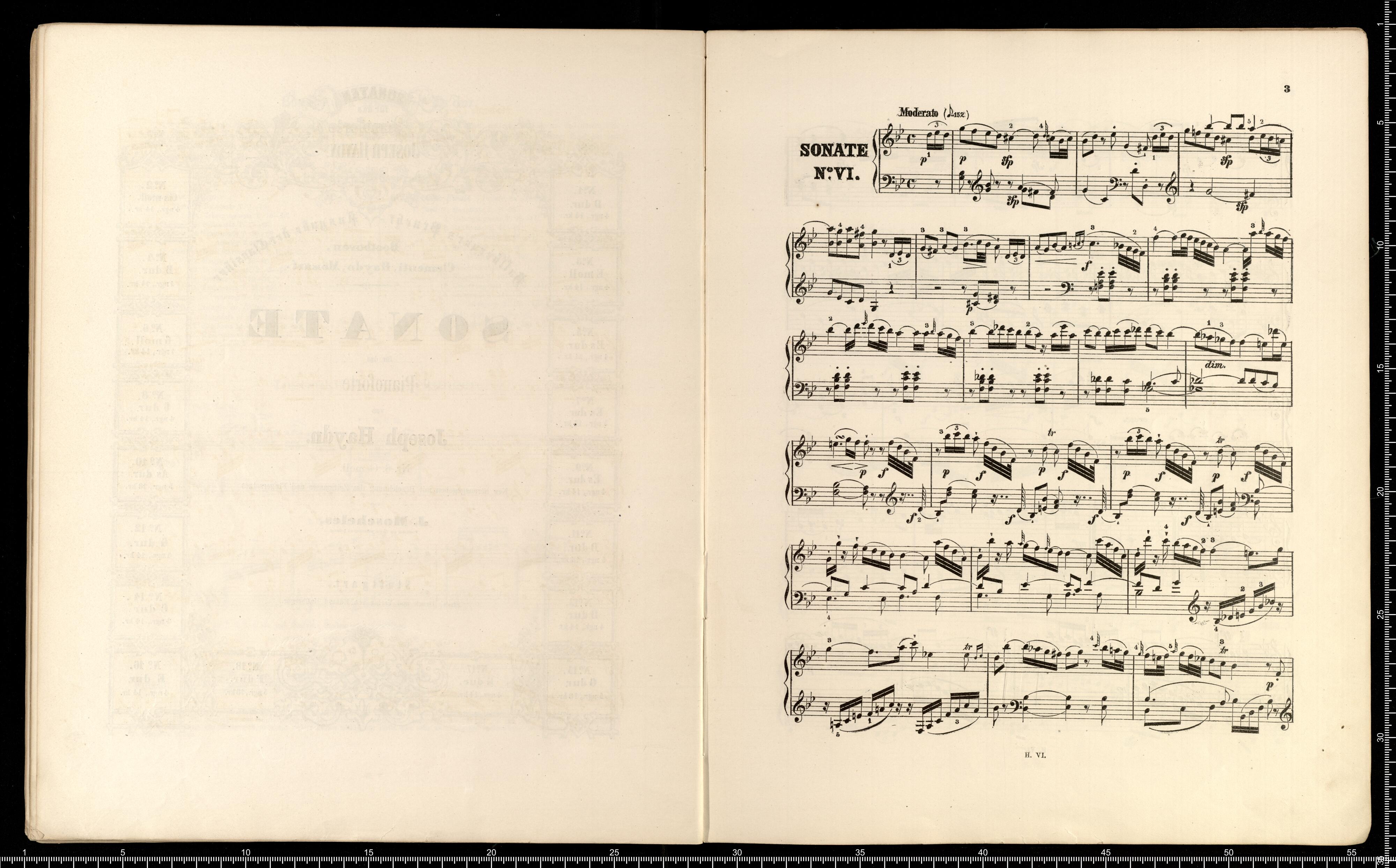 Hallberger's Pracht-Ausgabe | der Classiker | Beethoven, Clementi, Haydn, Mozart, Weber. | Ausgewählte Sonaten | für das | Pianoforte | von | Josepf Haydn. | Ausgegeben mit Bezeichnung des Zeitmaßes und Fingersatzes | von | I. Moscheles, | weil. Professor am Conservatorium für Musik in Leipzig. | Sibente Auflage. | Mit instructiven Erläterungen zu jedem einzelnen Werk. | Erster Band, | enthält: | Nro. 1. D rud. - Nro. 2. Cis moll. - Nro. 3. E moll. - Nro. 4 B dur. - Nro. 5. Es dur. - Nro. 6. G moll. | Nro. 7. Es dur. - Nro. 8. C dur. - Nro. 9. Es dur. | Stuttgart. | Stich, Druck und Verlag von Eduard Hallberger. | Jeder Band wird einzeln abgegeben