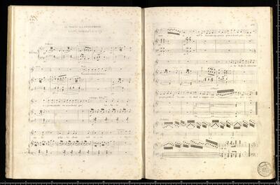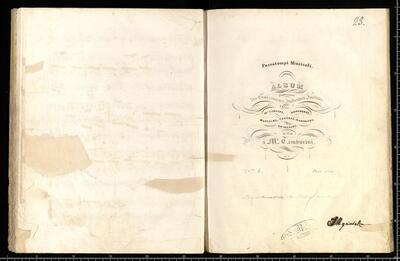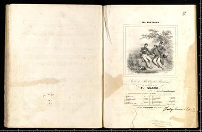[pl-text: Na dwóch ostatnich stronach znajduje się spis tytułów wszystkich trzydziestudwóch utworów, które znalazły się w zbiorze, zapisanych czarnym atramentem], [pl-text: Na ostatniej stronie pod spisem utworów znajduje się zapis: le 19 septembre 1839 à Bad Baden (19 września 1839 w Bad Baden)], [pl-text: W zbiorze braku utworu nr 29. Zachowana tylko karta tytułowa: Au bénéfice d'une veuve&ses enfants. | LA BRUYÉRE. | Romance. | dédiée a M|me Céleste Le Gonidec de Traissan (née de Langue.) | par | M|r Aristide de Latour, | Auteur des paroles & de la Musique. | Chantée par M|r RICHELMI | Paris, chez Bernard-Latte, Boulevard des Italiens, N|o. 2, | et chez us les Marchands de Musique.]