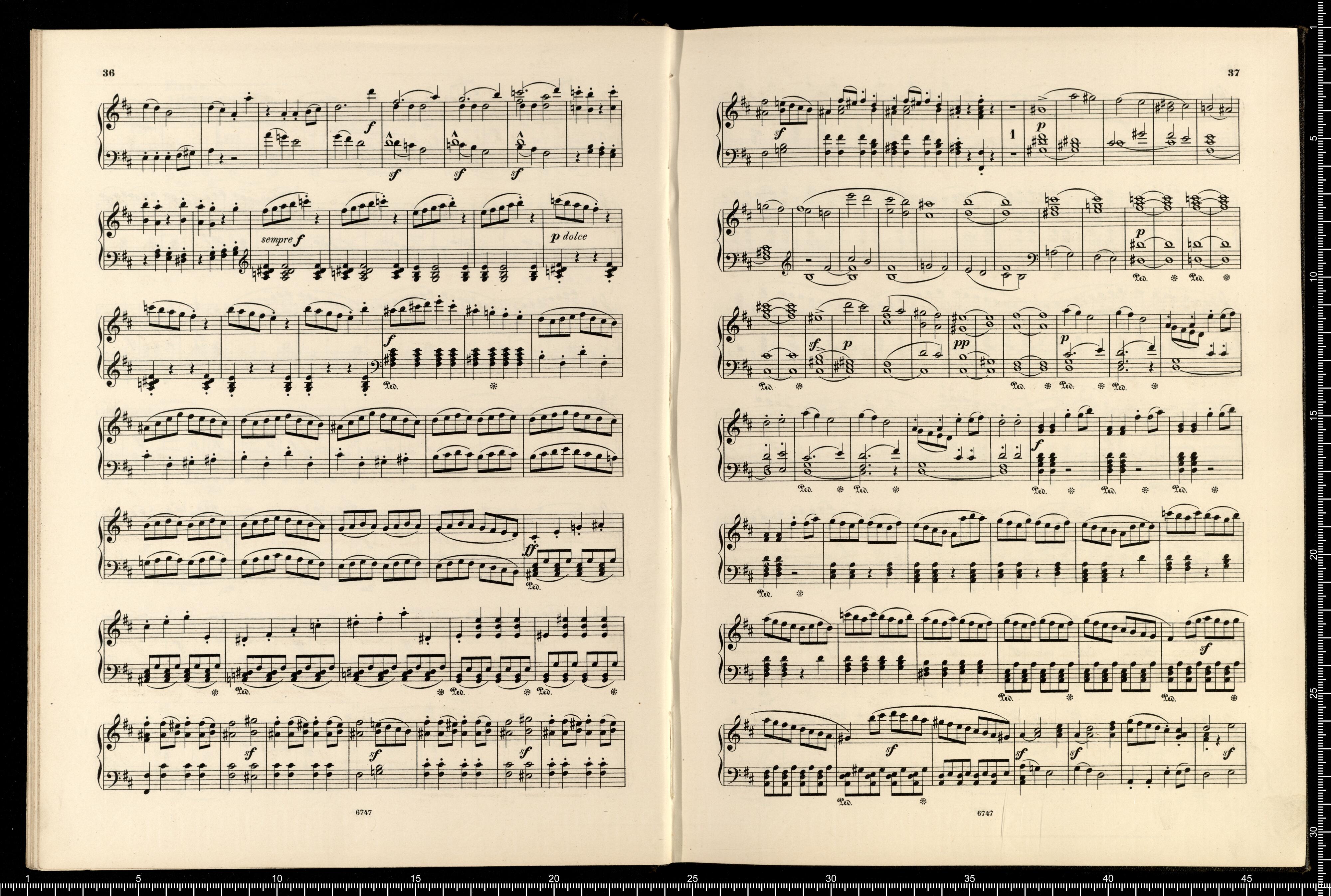 [title page:] Symphonien | von | Joseph Haydn | für Piano solo | arrangirt | von | AUGUST HRON. | Eigenthum des Verlegers. | LEIPZIG | C. F. PETERS. | F. Baumgarten, del Lith. Anst. C. G. Röder, Leipzig