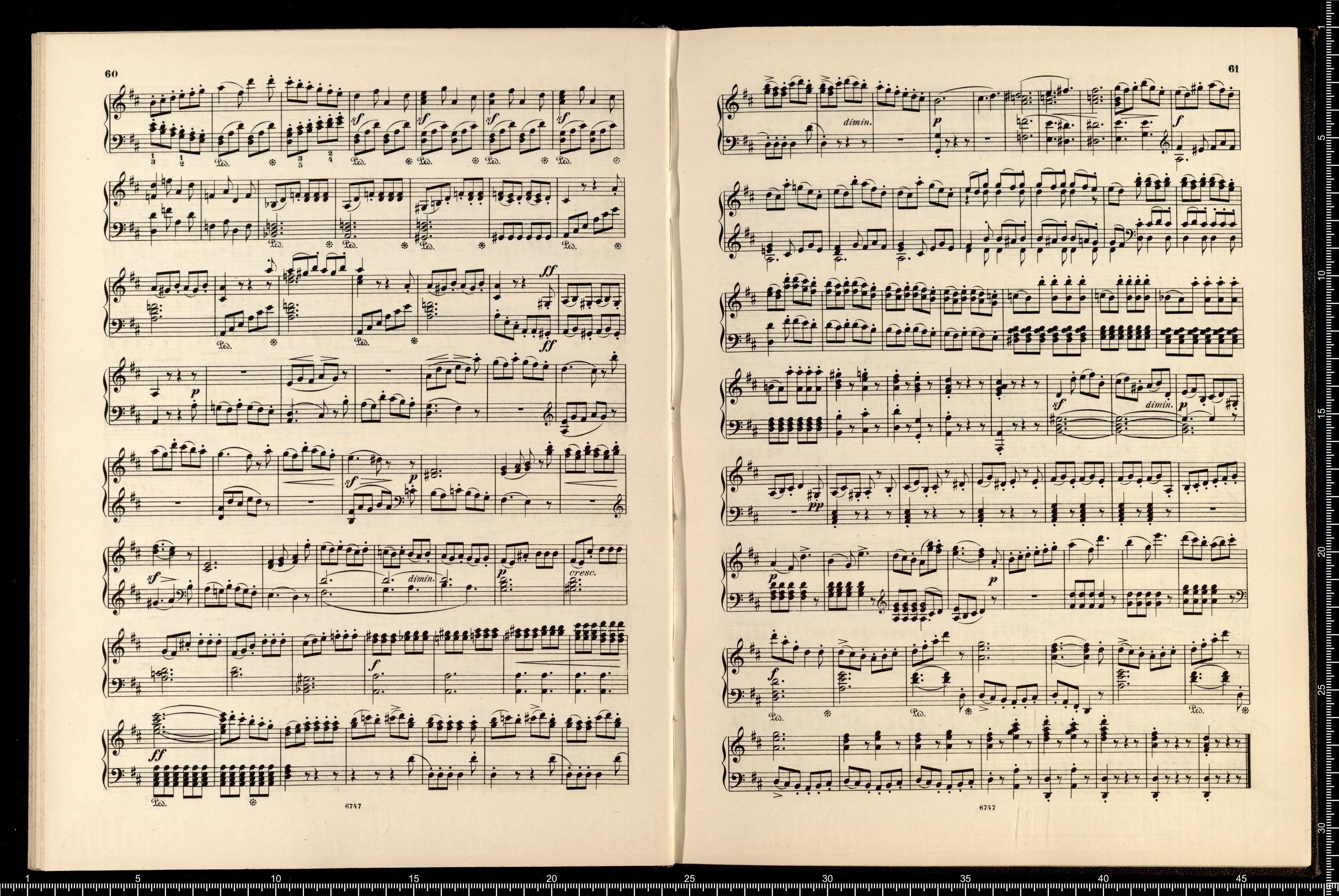 [title page:] Symphonien | von | Joseph Haydn | für Piano solo | arrangirt | von | AUGUST HRON. | Eigenthum des Verlegers. | LEIPZIG | C. F. PETERS. | F. Baumgarten, del Lith. Anst. C. G. Röder, Leipzig