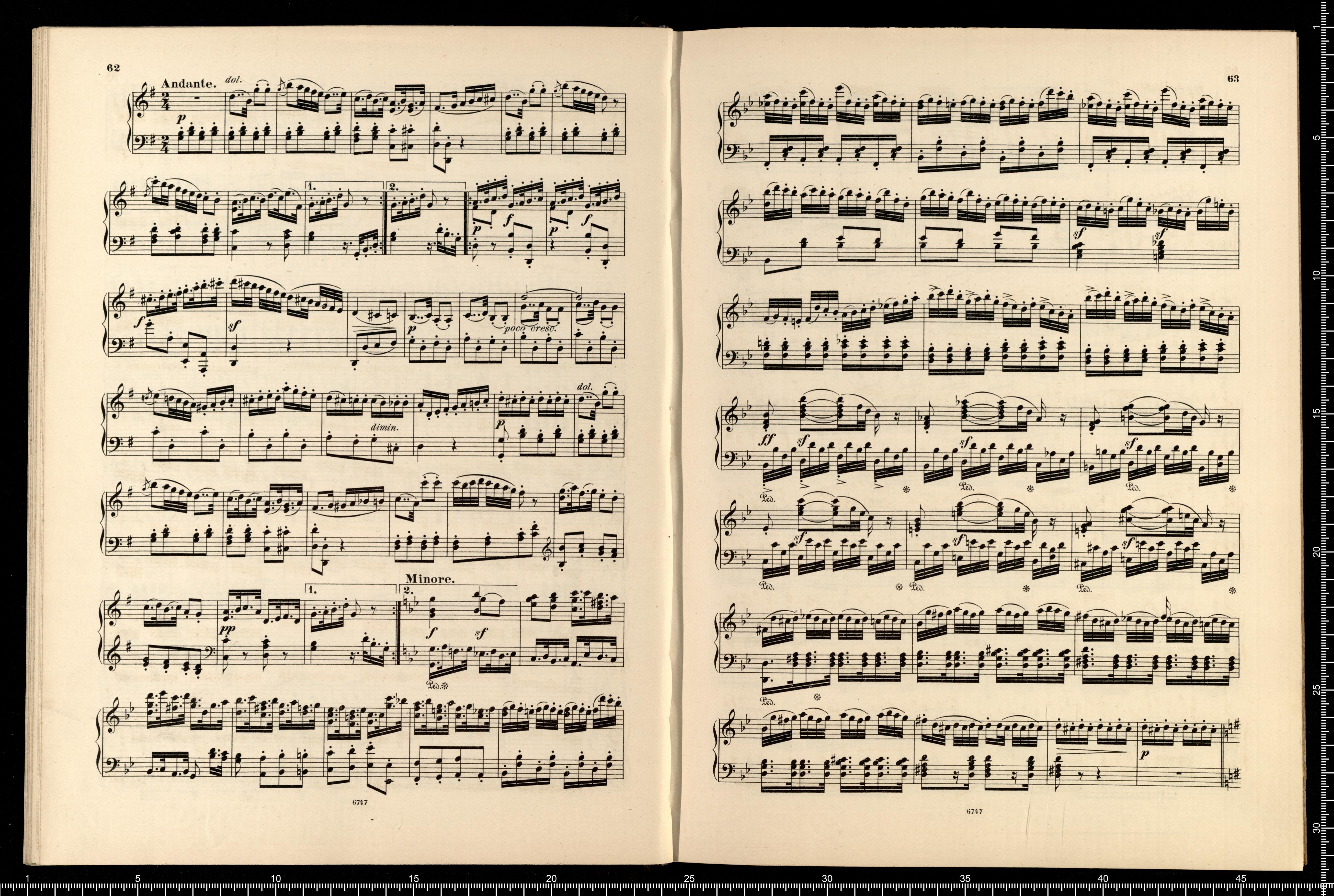 [title page:] Symphonien | von | Joseph Haydn | für Piano solo | arrangirt | von | AUGUST HRON. | Eigenthum des Verlegers. | LEIPZIG | C. F. PETERS. | F. Baumgarten, del Lith. Anst. C. G. Röder, Leipzig
