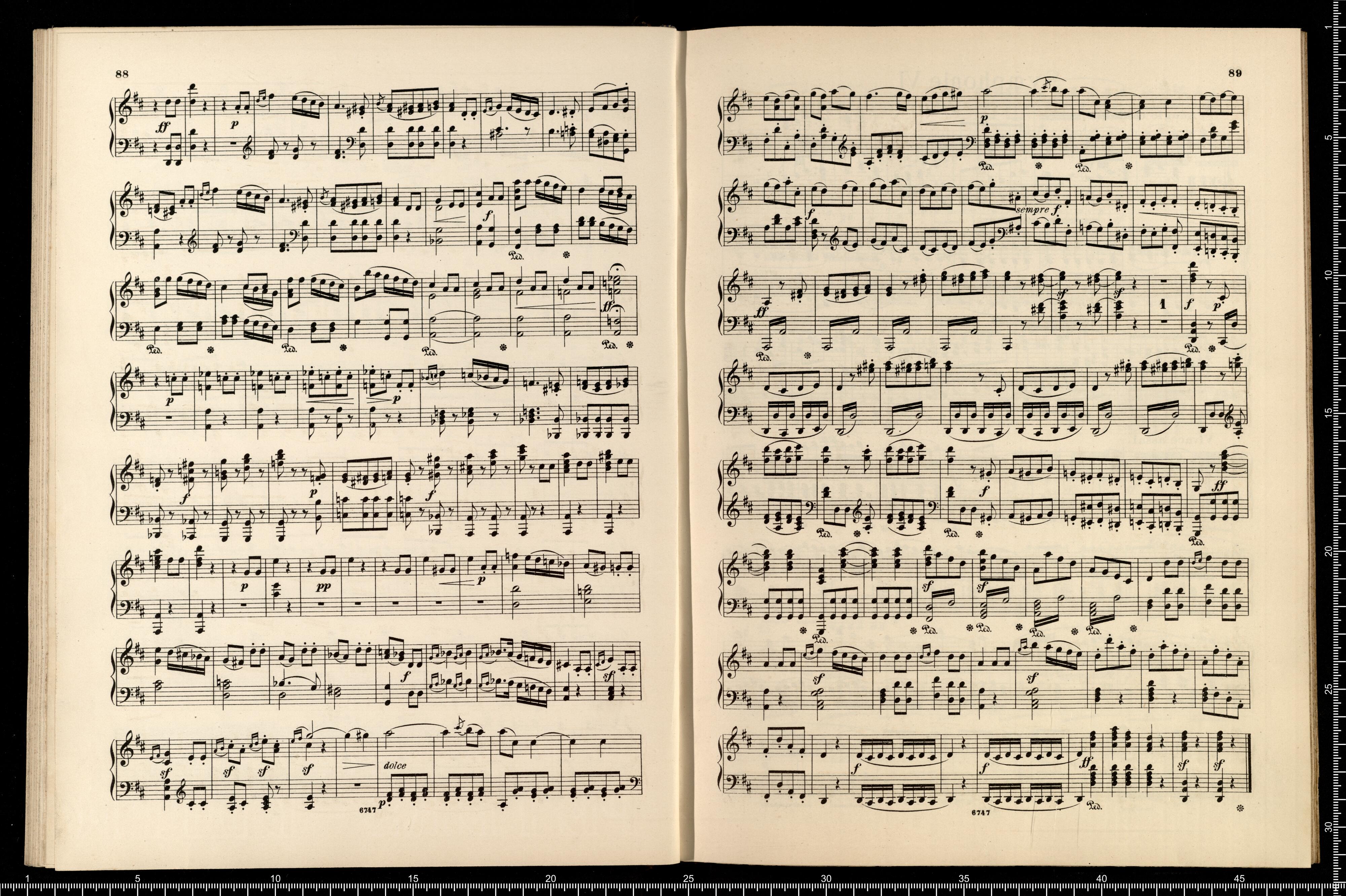 [title page:] Symphonien | von | Joseph Haydn | für Piano solo | arrangirt | von | AUGUST HRON. | Eigenthum des Verlegers. | LEIPZIG | C. F. PETERS. | F. Baumgarten, del Lith. Anst. C. G. Röder, Leipzig