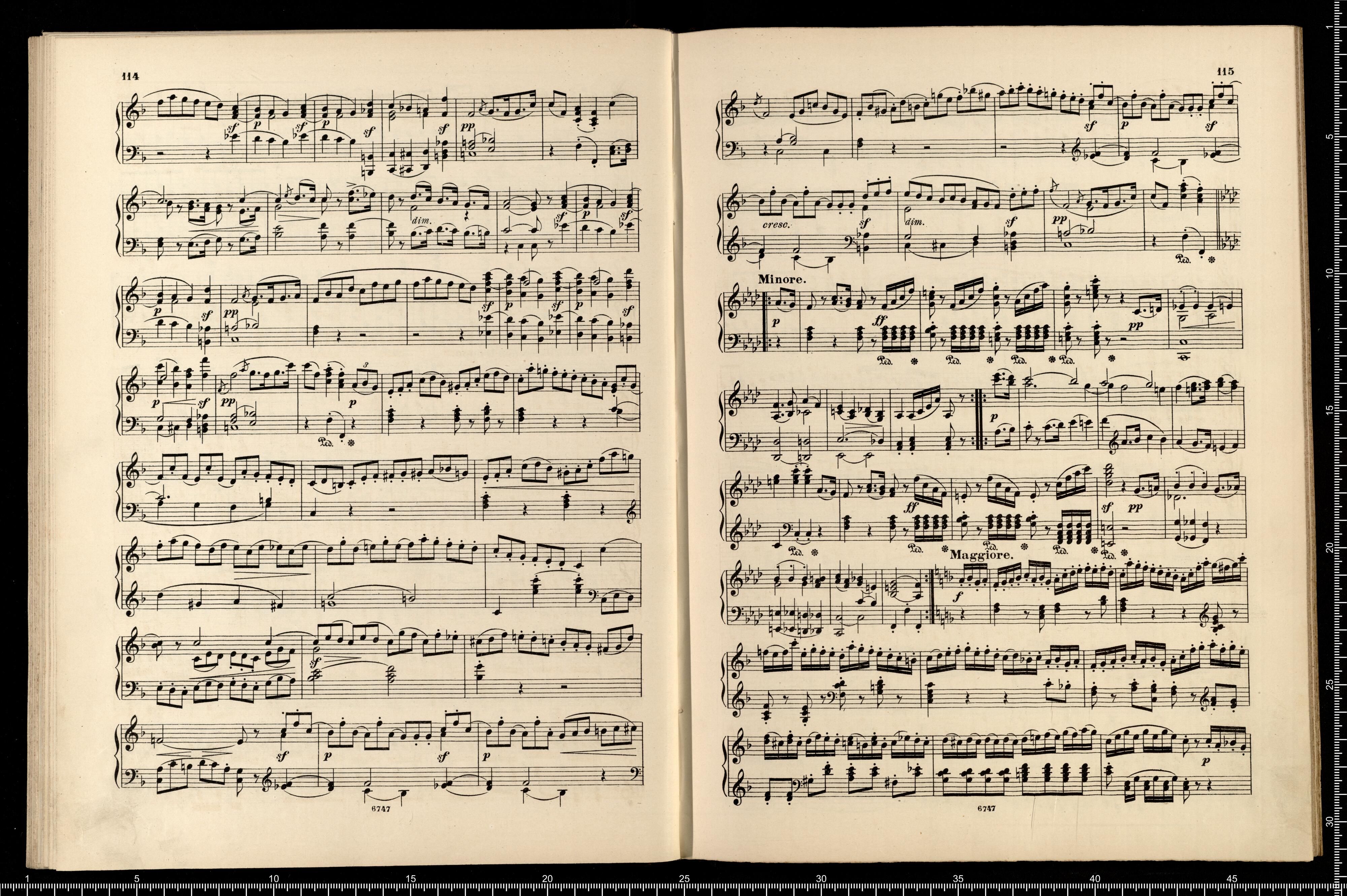 [title page:] Symphonien | von | Joseph Haydn | für Piano solo | arrangirt | von | AUGUST HRON. | Eigenthum des Verlegers. | LEIPZIG | C. F. PETERS. | F. Baumgarten, del Lith. Anst. C. G. Röder, Leipzig
