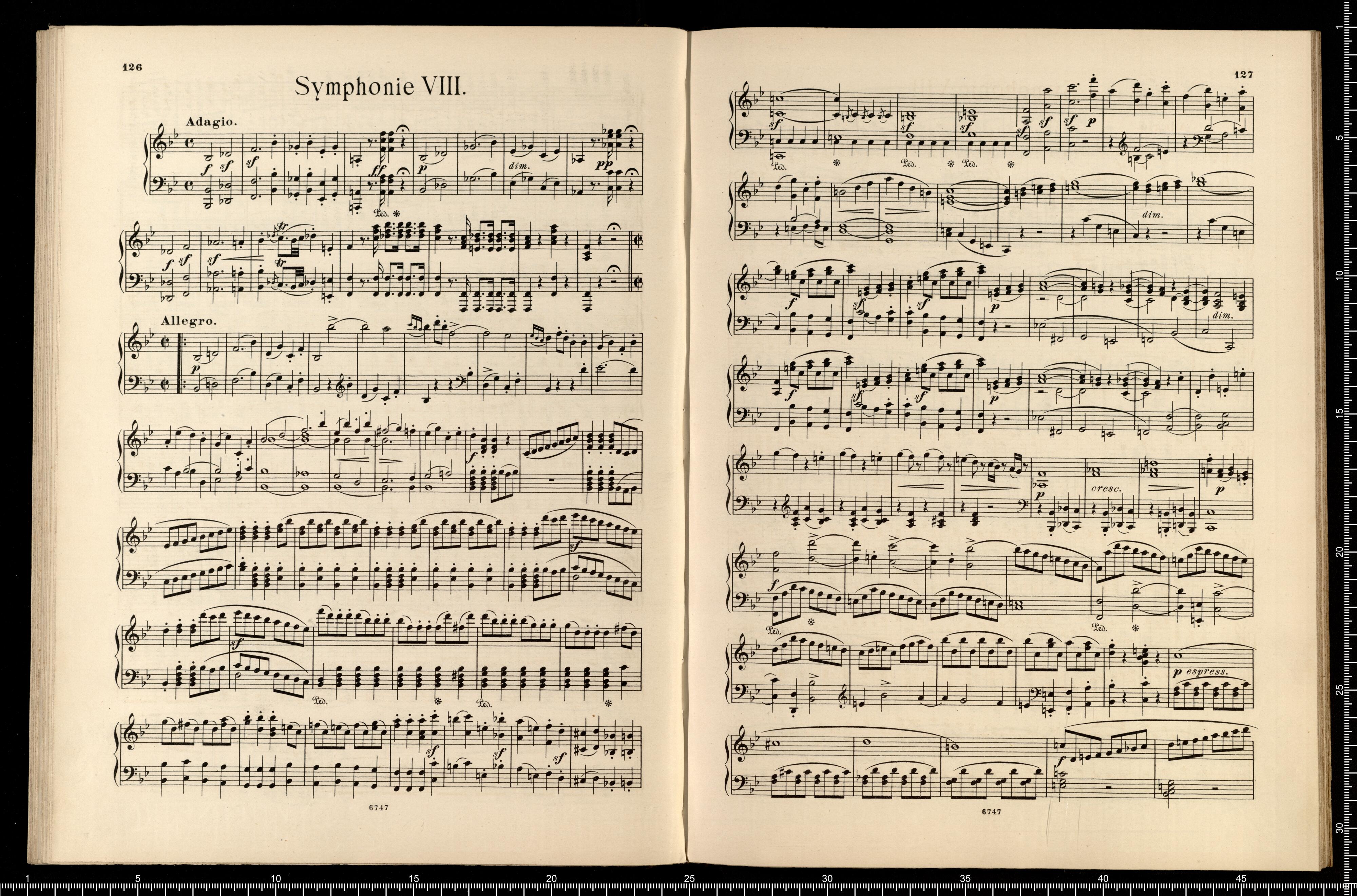 [title page:] Symphonien | von | Joseph Haydn | für Piano solo | arrangirt | von | AUGUST HRON. | Eigenthum des Verlegers. | LEIPZIG | C. F. PETERS. | F. Baumgarten, del Lith. Anst. C. G. Röder, Leipzig