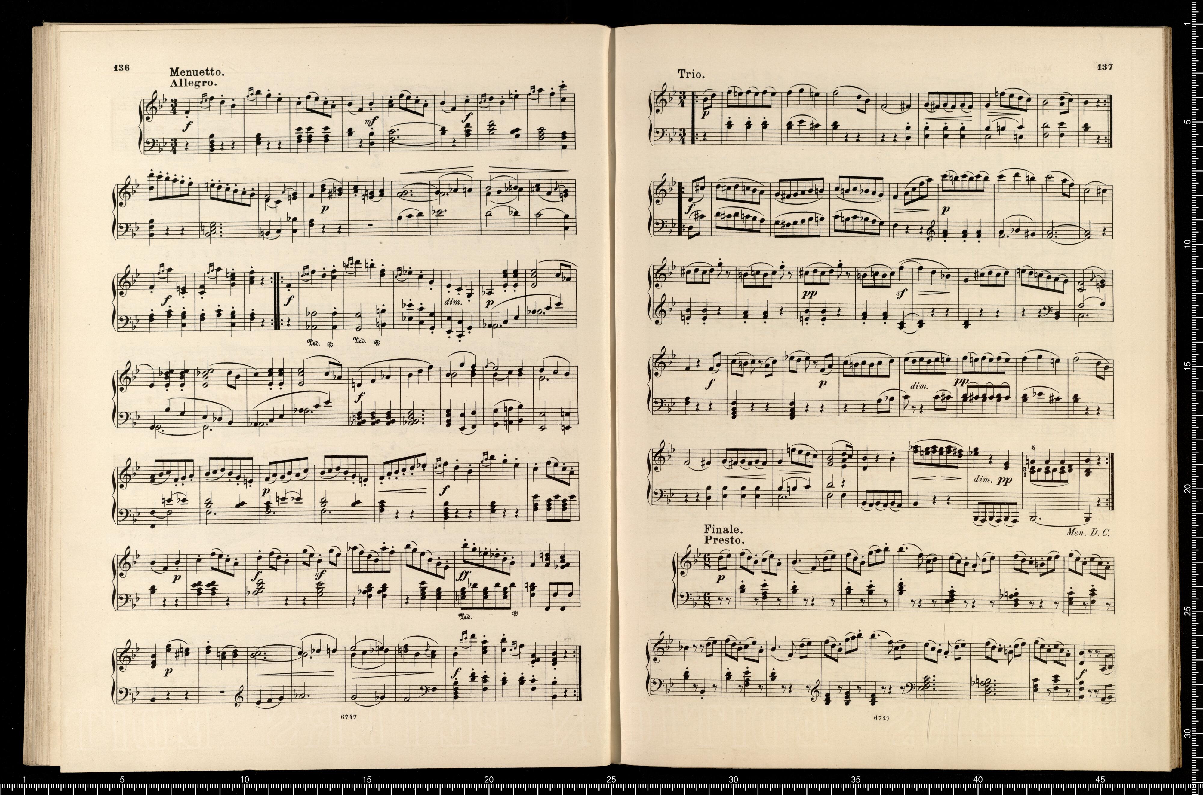 [title page:] Symphonien | von | Joseph Haydn | für Piano solo | arrangirt | von | AUGUST HRON. | Eigenthum des Verlegers. | LEIPZIG | C. F. PETERS. | F. Baumgarten, del Lith. Anst. C. G. Röder, Leipzig