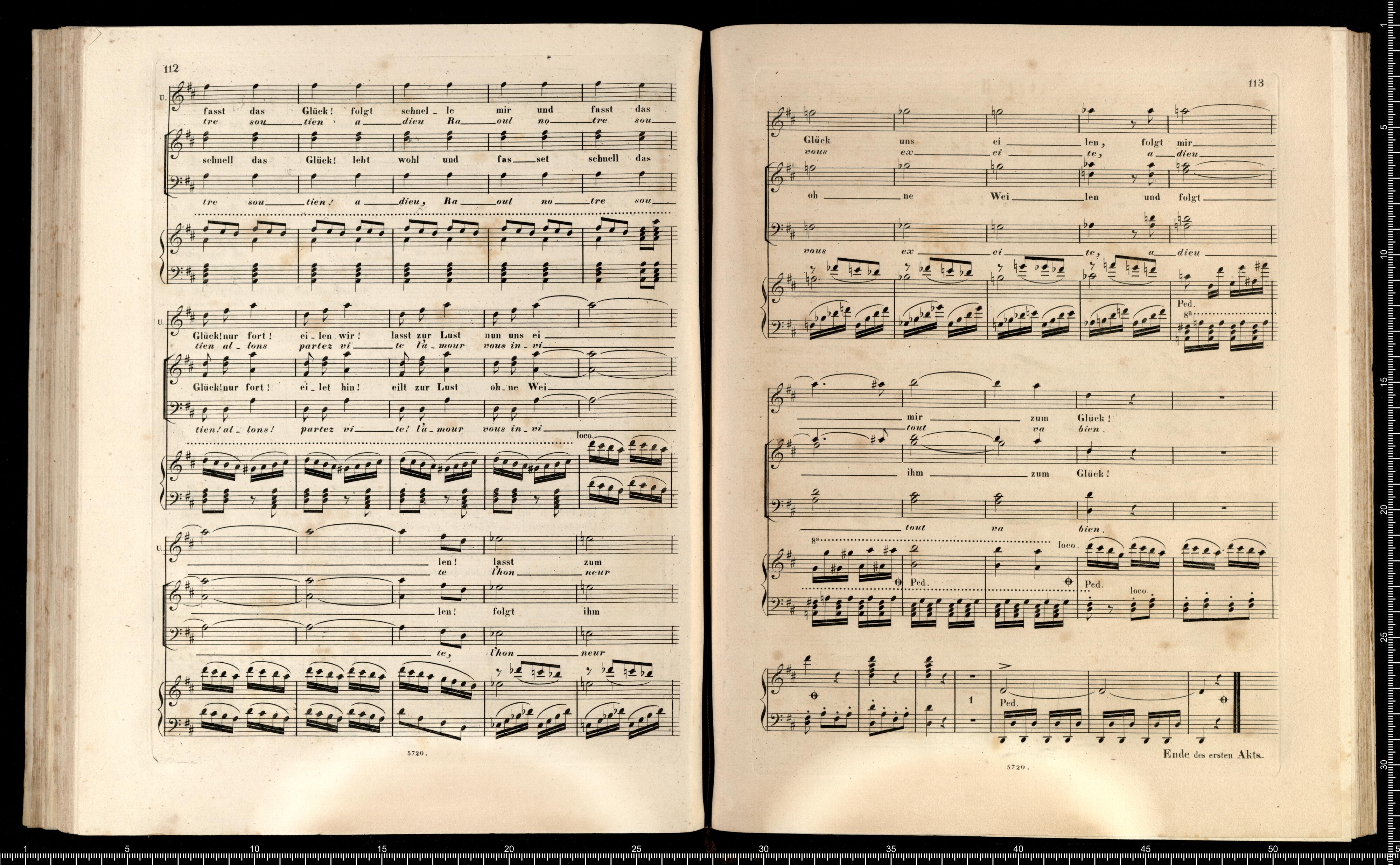 Die Hugenotten | (LES HUGUENOTS) | Grosse Oper in fünf Aufzügen | von E. Scribe | mit deutscher Übersetzung | von | J. F. CASTELLI | K. K. Landschafts Secretaire | componirt | von | Giacomo Meyerbeer | Kapellmeister am Königl. Preuss. Hofe | Ritter der Ehrenlegion etc. | Vollständiger Klavierauszug. | nach der Originalpartitur | von | CH. SCHWENCKE | MIT DEM PORTRAIT DES COMPONISTEN. | Eigenthum der Verleger. | Leipzig, bei Breitkopf & Härtel. | Paris, bei M. Schlesinger. London, bei Mori & Lavenn. | S|t Petersburg, bei Bernard & Holtz. Moskau, bei Paul Lehnhold. | Pr. 15 Thaler netto