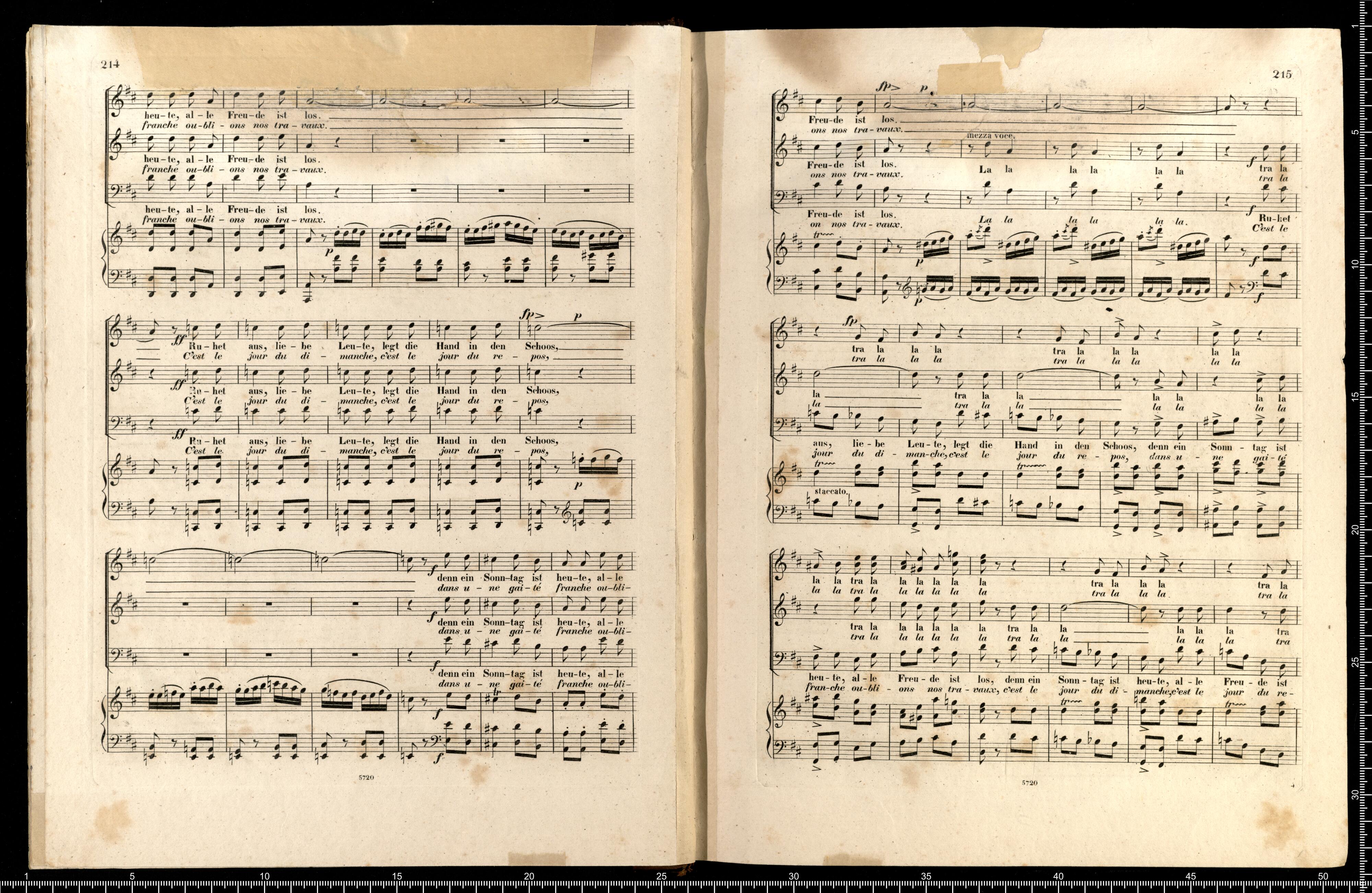 Die Hugenotten | (LES HUGUENOTS) | Grosse Oper in fünf Aufzügen | von E. Scribe | mit deutscher Übersetzung | von | J. F. CASTELLI | K. K. Landschafts Secretaire | componirt | von | Giacomo Meyerbeer | Kapellmeister am Königl. Preuss. Hofe | Ritter der Ehrenlegion etc. | Vollständiger Klavierauszug. | nach der Originalpartitur | von | CH. SCHWENCKE | MIT DEM PORTRAIT DES COMPONISTEN. | Eigenthum der Verleger. | Leipzig, bei Breitkopf & Härtel. | Paris, bei M. Schlesinger. London, bei Mori & Lavenn. | S|t Petersburg, bei Bernard & Holtz. Moskau, bei Paul Lehnhold. | Pr. 15 Thaler netto. | Eingetragen in das Vereins-Archiv. | Lith. bei Fr. Krätzschmer in Leipzig