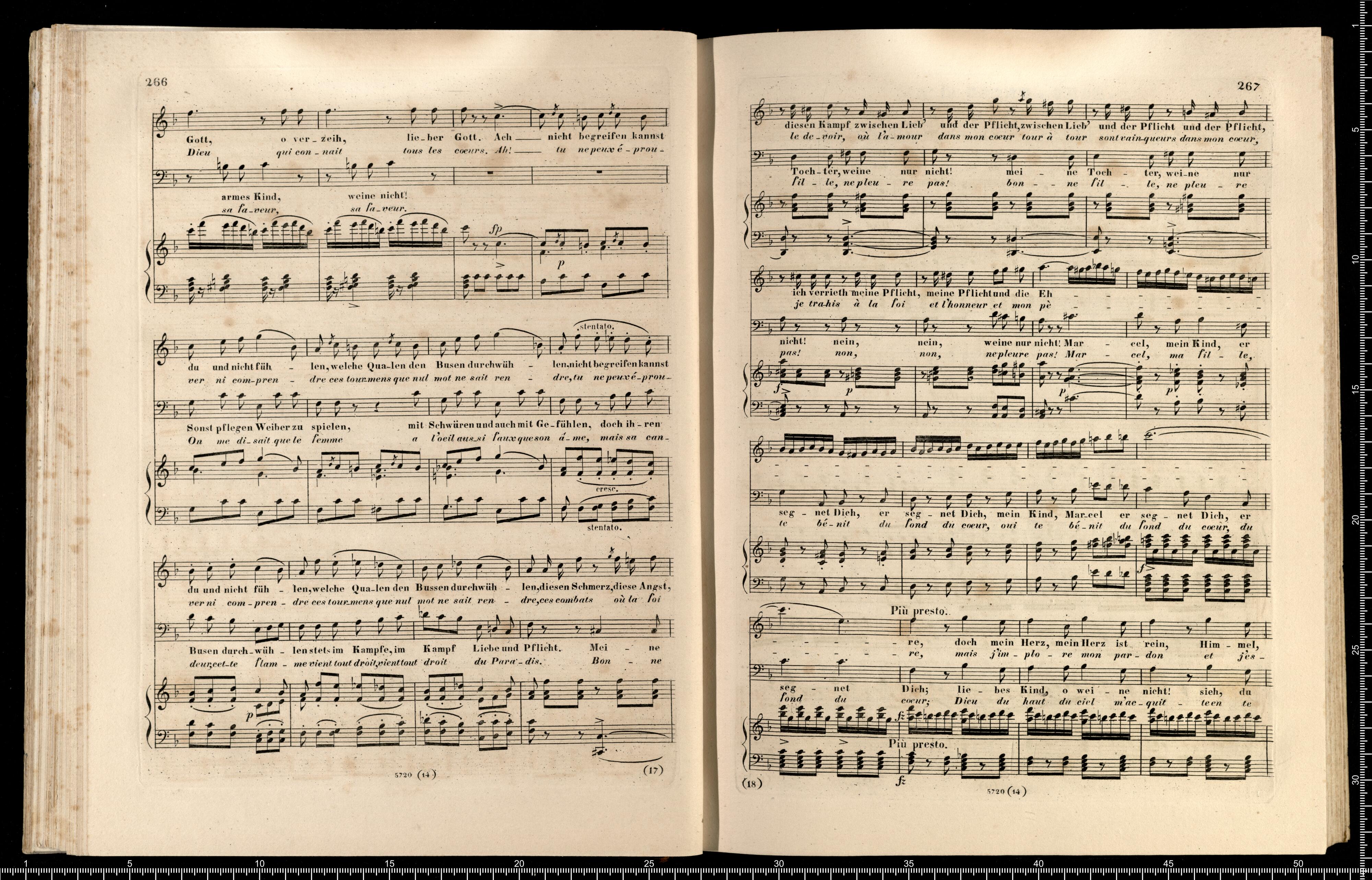 Die Hugenotten | (LES HUGUENOTS) | Grosse Oper in fünf Aufzügen | von E. Scribe | mit deutscher Übersetzung | von | J. F. CASTELLI | K. K. Landschafts Secretaire | componirt | von | Giacomo Meyerbeer | Kapellmeister am Königl. Preuss. Hofe | Ritter der Ehrenlegion etc. | Vollständiger Klavierauszug. | nach der Originalpartitur | von | CH. SCHWENCKE | MIT DEM PORTRAIT DES COMPONISTEN. | Eigenthum der Verleger. | Leipzig, bei Breitkopf & Härtel. | Paris, bei M. Schlesinger. London, bei Mori & Lavenn. | S|t Petersburg, bei Bernard & Holtz. Moskau, bei Paul Lehnhold. | Pr. 15 Thaler netto. | Eingetragen in das Vereins-Archiv. | Lith. bei Fr. Krätzschmer in Leipzig