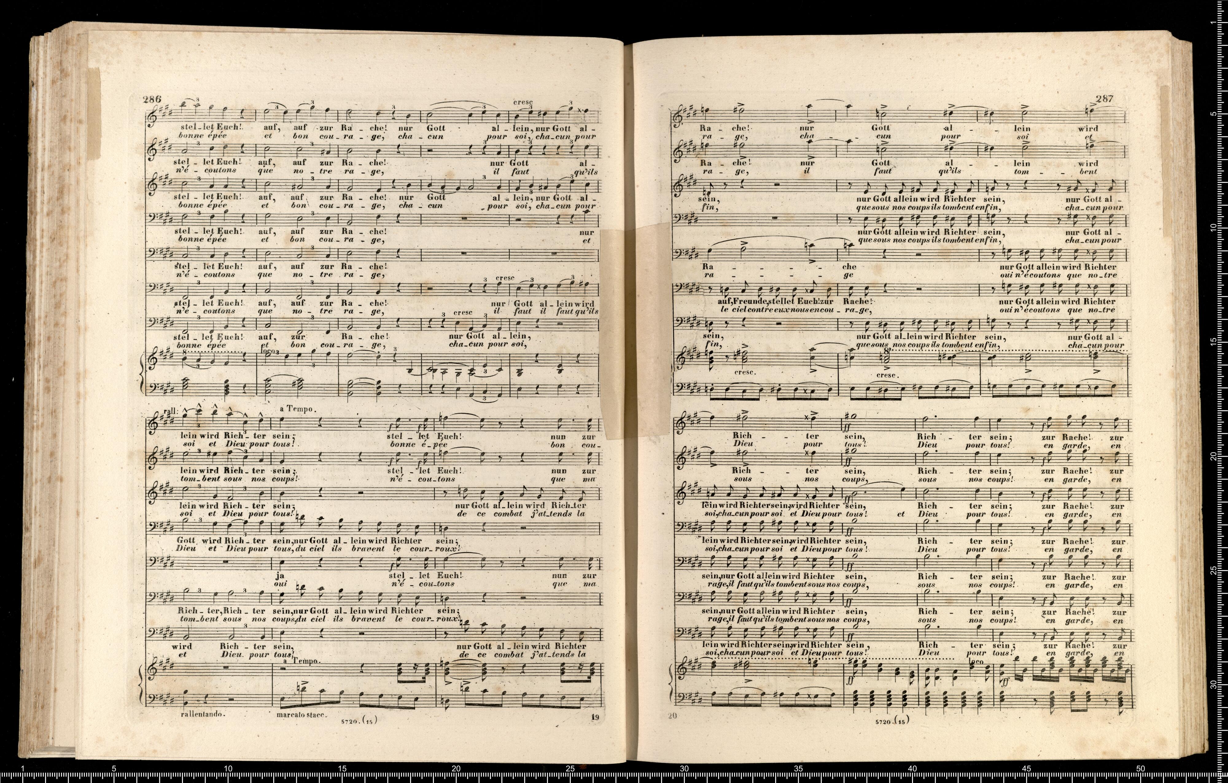 Die Hugenotten | (LES HUGUENOTS) | Grosse Oper in fünf Aufzügen | von E. Scribe | mit deutscher Übersetzung | von | J. F. CASTELLI | K. K. Landschafts Secretaire | componirt | von | Giacomo Meyerbeer | Kapellmeister am Königl. Preuss. Hofe | Ritter der Ehrenlegion etc. | Vollständiger Klavierauszug. | nach der Originalpartitur | von | CH. SCHWENCKE | MIT DEM PORTRAIT DES COMPONISTEN. | Eigenthum der Verleger. | Leipzig, bei Breitkopf & Härtel. | Paris, bei M. Schlesinger. London, bei Mori & Lavenn. | S|t Petersburg, bei Bernard & Holtz. Moskau, bei Paul Lehnhold. | Pr. 15 Thaler netto. | Eingetragen in das Vereins-Archiv. | Lith. bei Fr. Krätzschmer in Leipzig