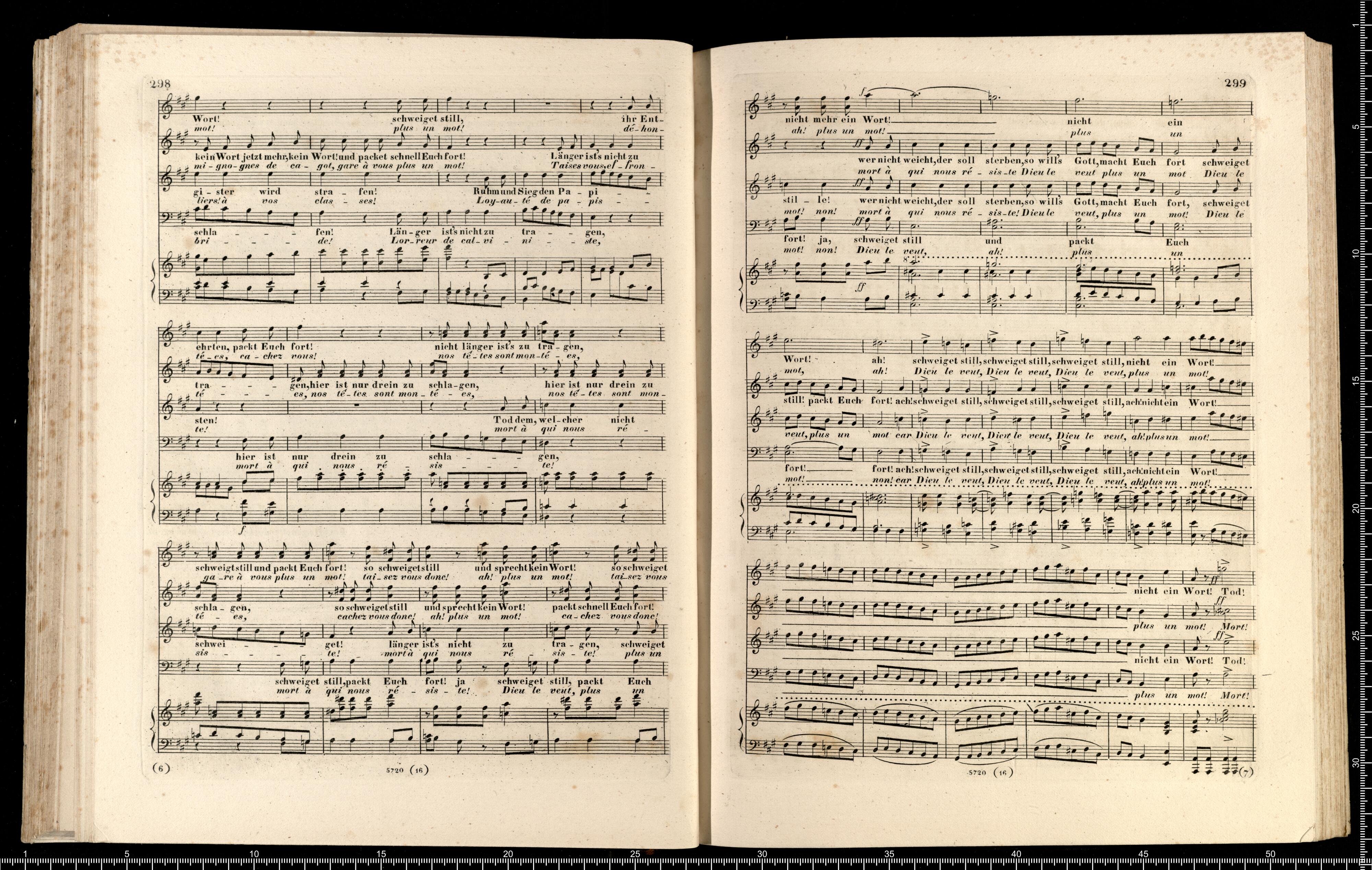Die Hugenotten | (LES HUGUENOTS) | Grosse Oper in fünf Aufzügen | von E. Scribe | mit deutscher Übersetzung | von | J. F. CASTELLI | K. K. Landschafts Secretaire | componirt | von | Giacomo Meyerbeer | Kapellmeister am Königl. Preuss. Hofe | Ritter der Ehrenlegion etc. | Vollständiger Klavierauszug. | nach der Originalpartitur | von | CH. SCHWENCKE | MIT DEM PORTRAIT DES COMPONISTEN. | Eigenthum der Verleger. | Leipzig, bei Breitkopf & Härtel. | Paris, bei M. Schlesinger. London, bei Mori & Lavenn. | S|t Petersburg, bei Bernard & Holtz. Moskau, bei Paul Lehnhold. | Pr. 15 Thaler netto. | Eingetragen in das Vereins-Archiv. | Lith. bei Fr. Krätzschmer in Leipzig