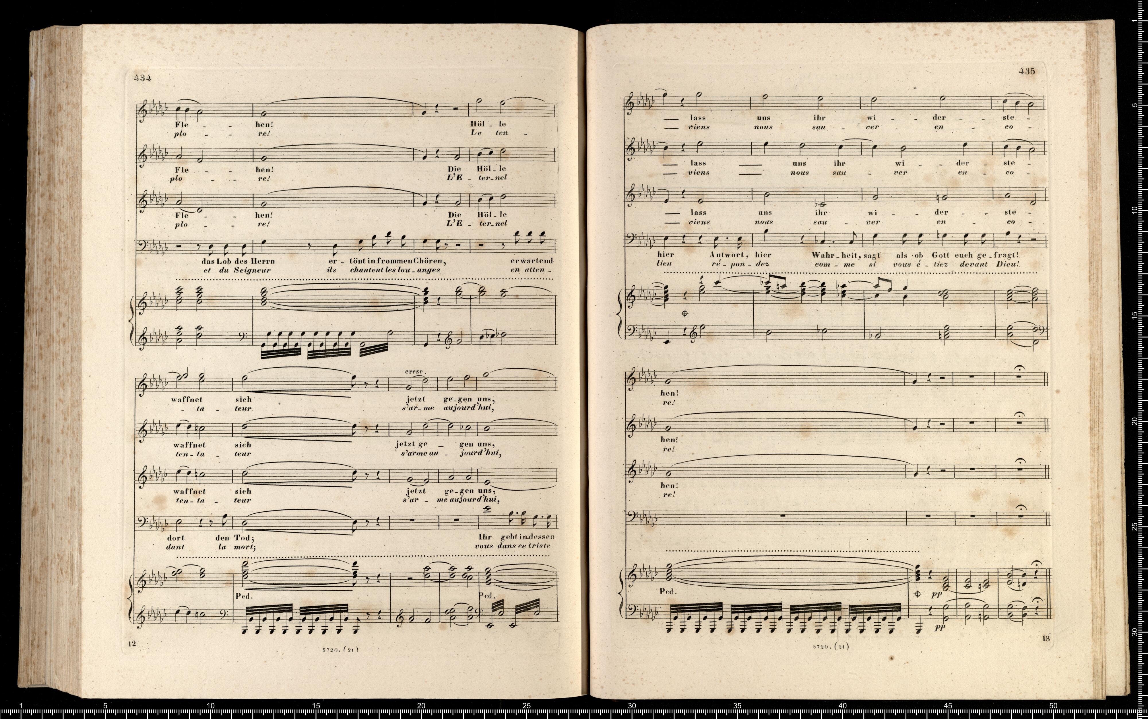 Die Hugenotten | (LES HUGUENOTS) | Grosse Oper in fünf Aufzügen | von E. Scribe | mit deutscher Übersetzung | von | J. F. CASTELLI | K. K. Landschafts Secretaire | componirt | von | Giacomo Meyerbeer | Kapellmeister am Königl. Preuss. Hofe | Ritter der Ehrenlegion etc. | Vollständiger Klavierauszug. | nach der Originalpartitur | von | CH. SCHWENCKE | MIT DEM PORTRAIT DES COMPONISTEN. | Eigenthum der Verleger. | Leipzig, bei Breitkopf & Härtel. | Paris, bei M. Schlesinger. London, bei Mori & Lavenn. | S|t Petersburg, bei Bernard & Holtz. Moskau, bei Paul Lehnhold. | Pr. 15 Thaler netto. | Eingetragen in das Vereins-Archiv. | Lith. bei Fr. Krätzschmer in Leipzig