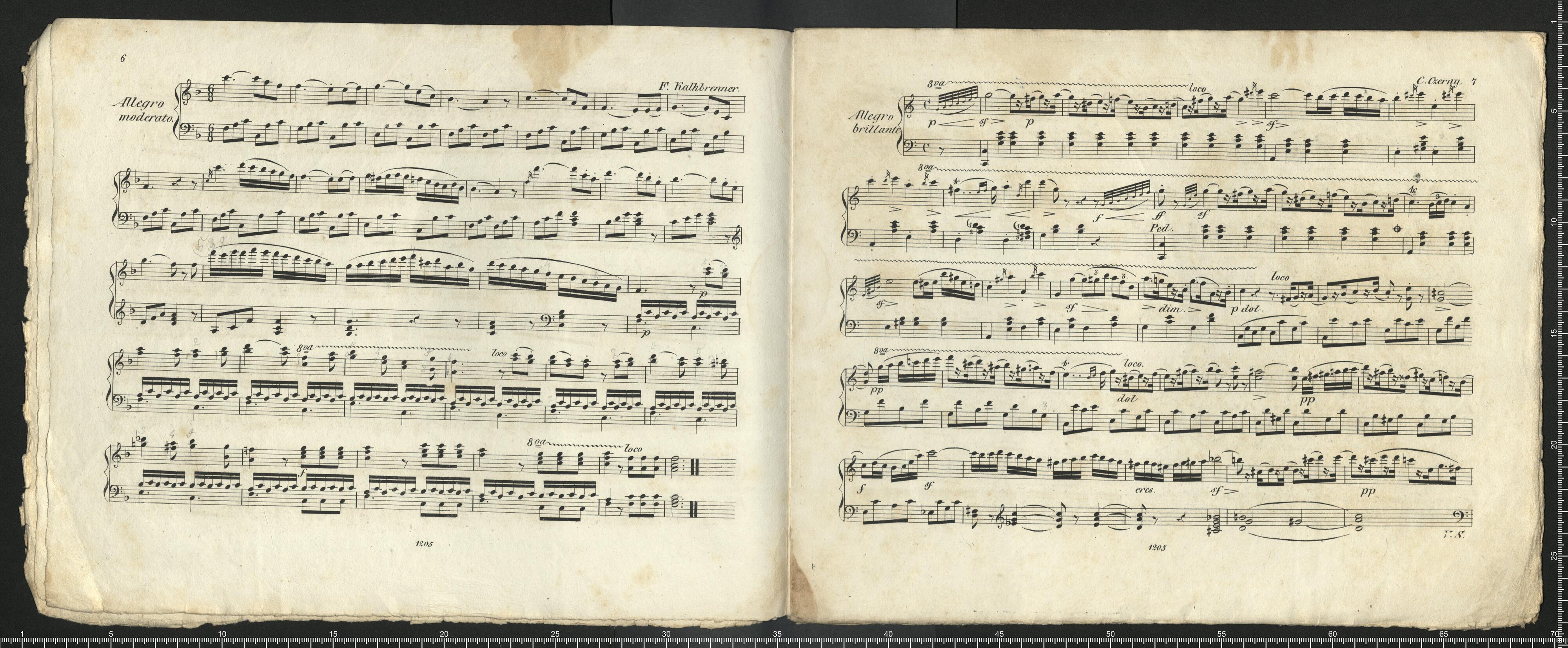 PIECES CHOISIES | FACILES | Pour le Pianoforte | extrait des Oeuvres de | CH. CZERNY, HUMMEL, | Kalkbrenner, Moscheles, Ries. | Cahier 1. Pr. 12 Gr. | à Leipsic chez Fréderic Hofmeister. | à Varsovie chez André Brzezina