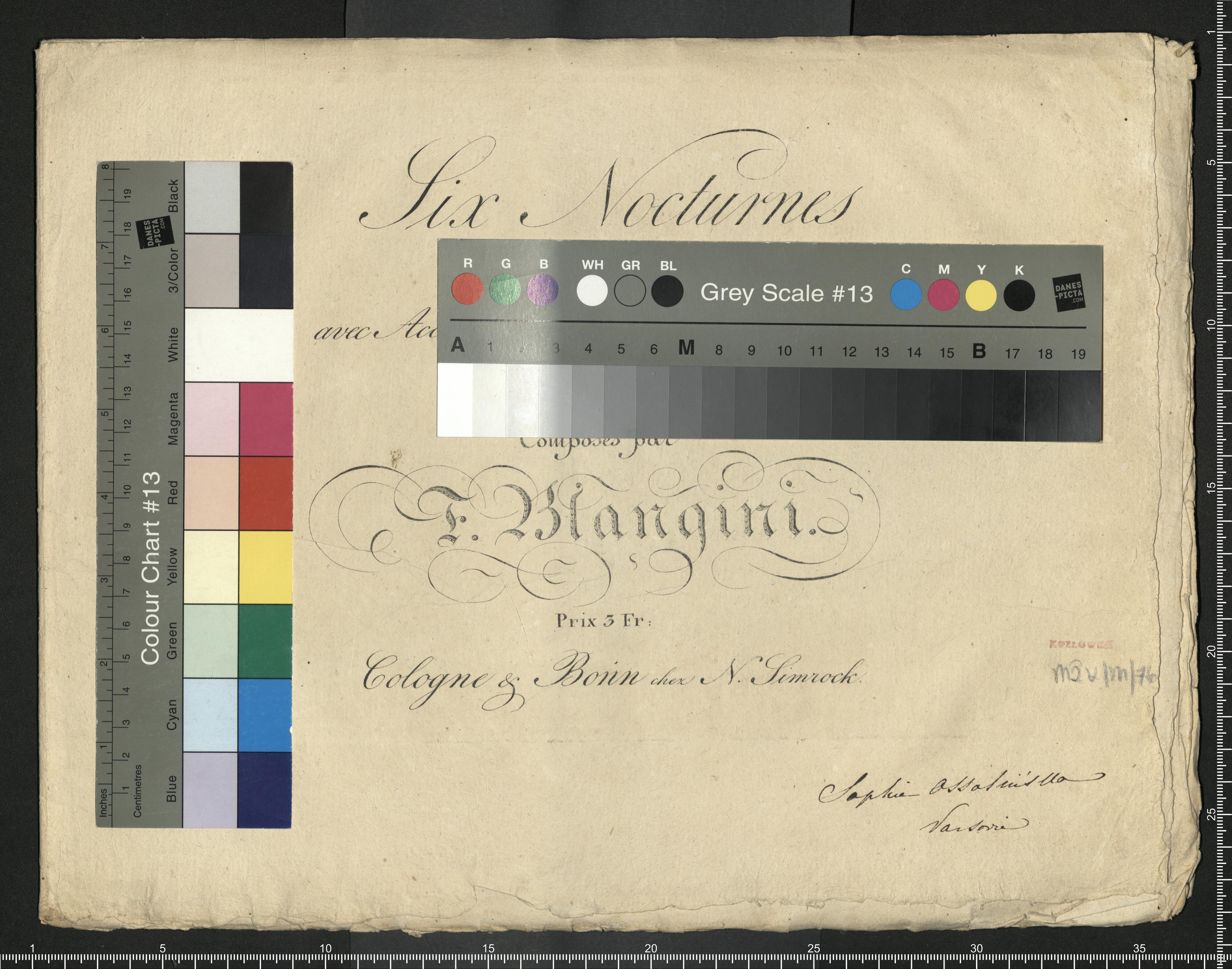 [title page:] Six Nocturnes | à deux voix | avec Accompagnement de Pianoforté | Composés par | F. Blangini. | Prix 3 Fr: | Cologne & Bonn chez N. Simrock | [in black ink:] Sophie Ossolińska | Varsovie