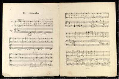 Jego Excellencyi Najprzewielebniejszemu | KS. ARCYBISKUPOWI | ISSAKOWI MIKOŁAIOWI | ISAKOWICZOWI. | Ecce sacerdos | HYMN | na chór męski | i ztow. organow | do wykonywania podczas wejścia biskupa | do kościoła napisał | M. Sołtys. | OP. 17. | LWÓW | Nakładem księgarni i składu nit | GUBRYNOWICZA I SYNA. | przy placu Katedralnym. | Druck. u: Verlags: A. G. vorm. R. v. Waidheim, Jos. Eberle u. C, Wien, VIII. | 4054, Oto kapłan Chrystusów oto kapłan wielki Szczęśliw Coro maschile, org. 17, Ecce sacerdos
