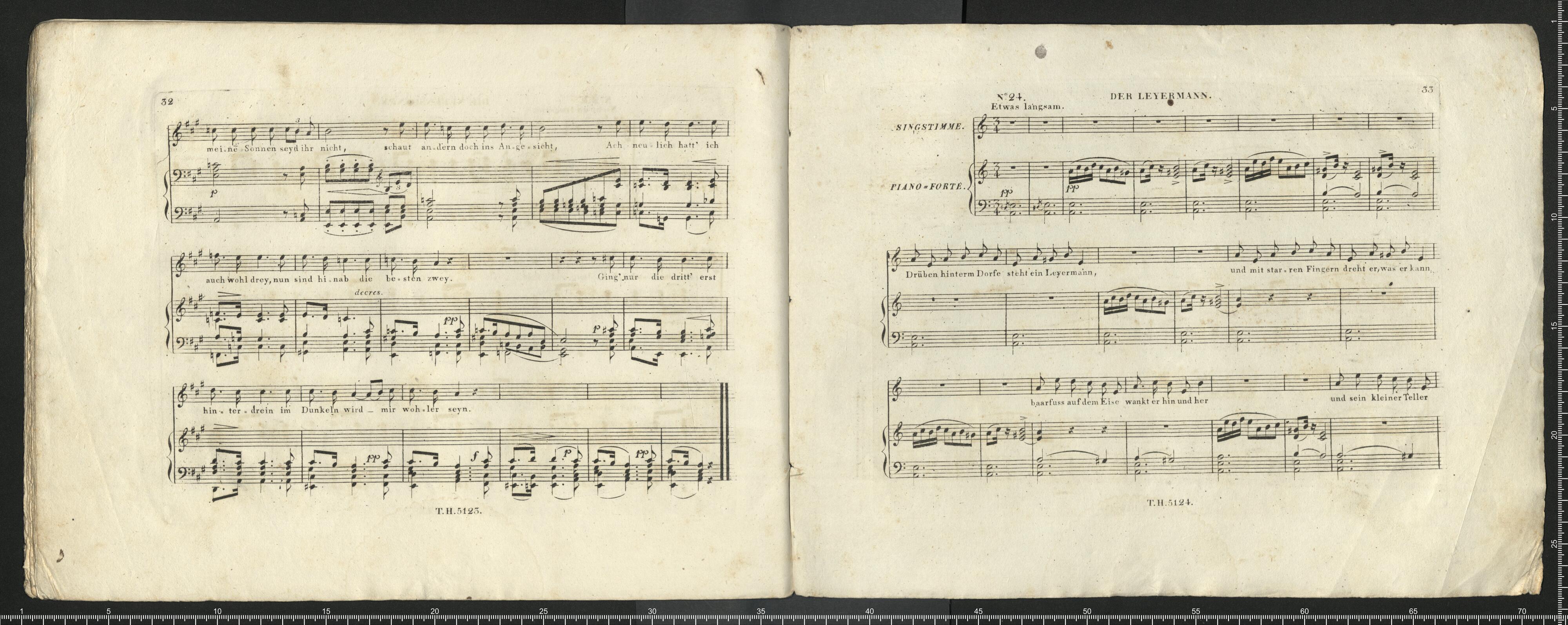 WINTERREISE. | von | WILHELM MÜLLER. | In Musik gesetzt | für eine Singstimme mit Begleitung des Pianoforte | von | Franz Schubert. | 99stes [?] Werk. | 1te Abtheilung. | No. 5101.5113. | EIGENTHUM DES VERLEGERS Preis für die | Wien, by [?] Tobias Haslinger. | Musikverleger | im Hause der ersten österr: Sparkasse | am Graben No. 572