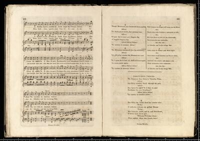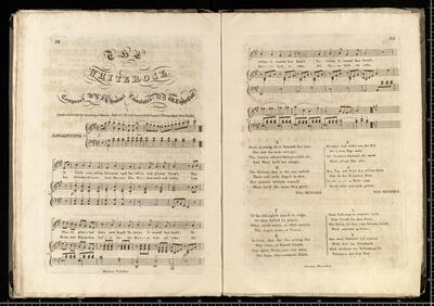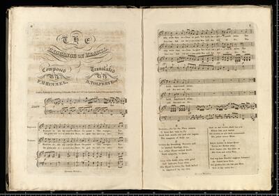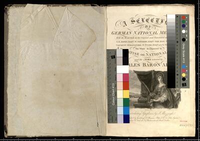 Widmung vor Beginn der Abhandlung "On National Music": "[Gewidmet] / The Countess of Hardwicke, / This First Volume / Containing a Selection / Of German National Melodies / Is Respectfully Inscribed / By the Author.", Vorgeklebt "Conditions" ("This Work will consist of Three Volumes, each Volume to contain Two Numbers, each Number containing Ten Songs etc."), p. 1-8 Abhandlung "On National Music"