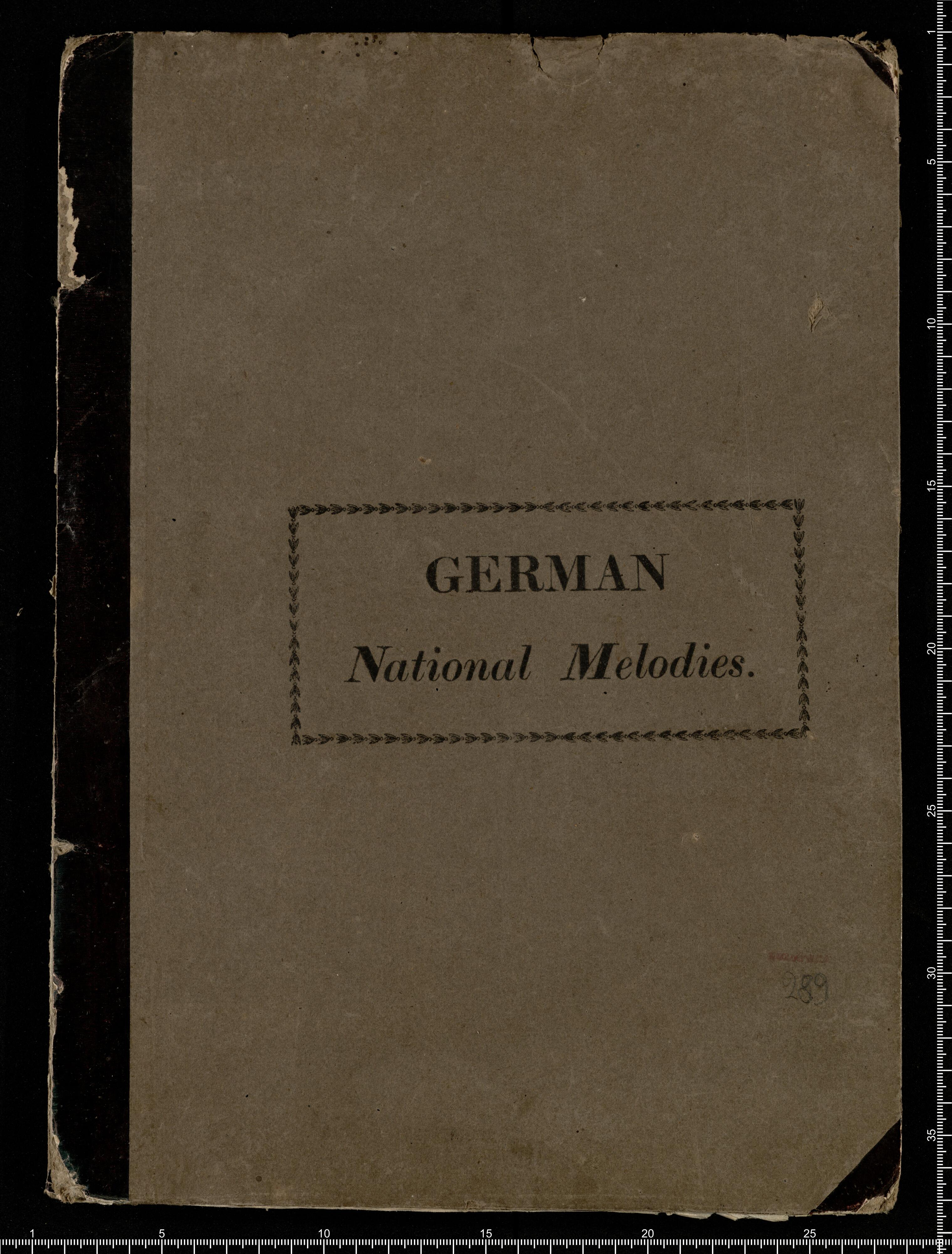 [cover title:] GERMAN | National Melodies. | [title page:] A Selection | of | GERMAN NATIONAL MELODIES, | With the Words both in the Original, and Translated into English, by | E. B. IMPEY, ESQ|R W. SOTHEBY, ESQ|R THE HON. W. SPENCER, | VISCOUNT STRANGFORD, W. TIGHE, ESQ|R AND S. TOLFREY, ESQ|R | The Whole Accompanied by | A TREATISE on NATIONAL MUSIC, | and the AIRS selected by | CHARLES BARON ARNIM. | [picture] | The Figures drawn by Mifs E. Beresford. Engraved by J. Powell. The Landscape by Count Jenison. | Vol. 1|s|t The introductory Symphonies by J. Mazzinghi. | London, Published by Goulding, D'Almaine, Potter, & C|o. 20, Soho Square, | and to be had at N|o 7, Westmoreland Street, Dublin