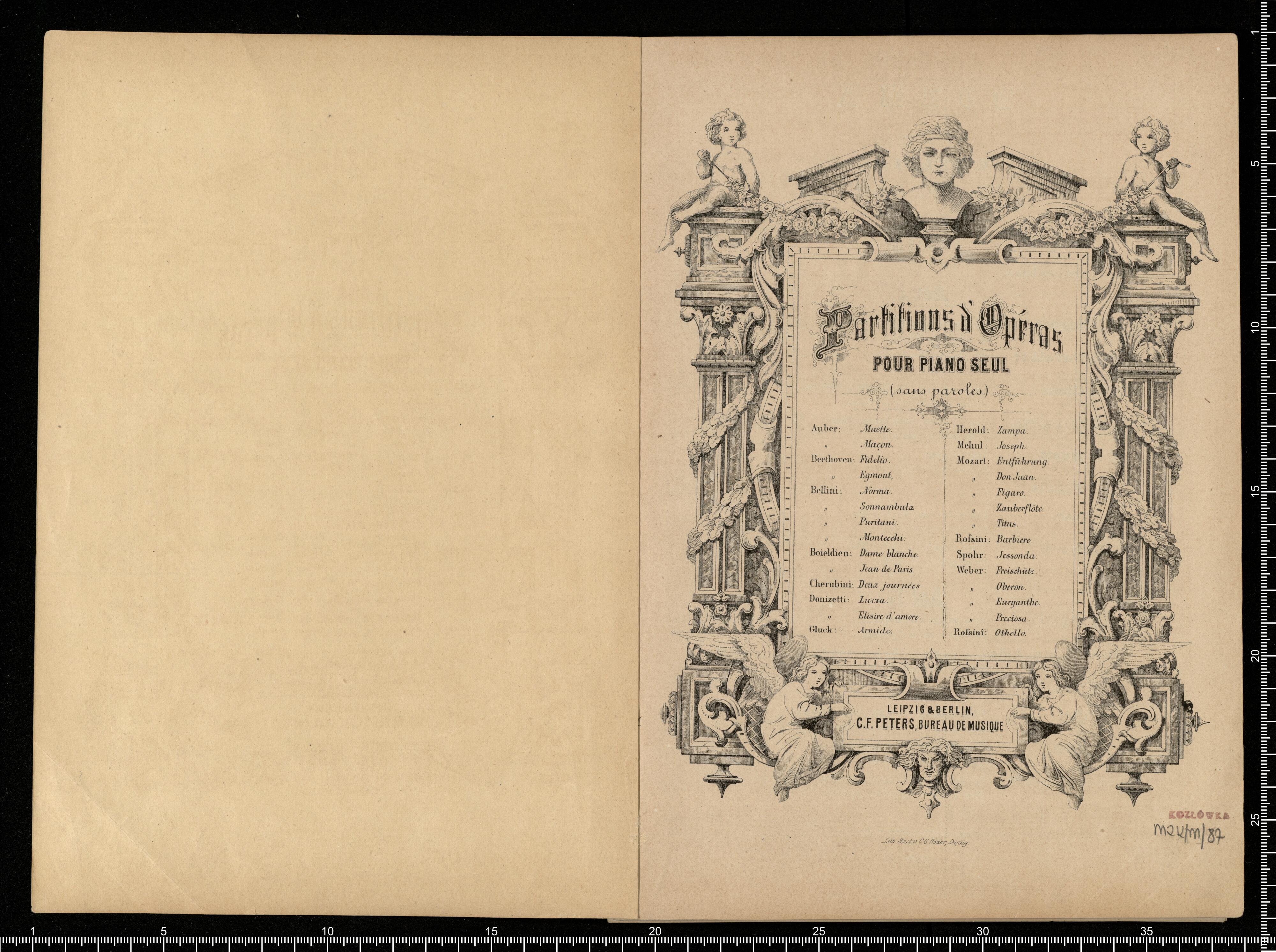 [title page, p. 3, at caption:] Partitions d'Opéras | POUR PIANO SEUL | (sans paroles.) | [at foot:] LEIPZIG & BERLIN, | C. F. PETERS, BUREAU DE MUSIQUE | Lith Inst v C. G. Röder, Leipzig