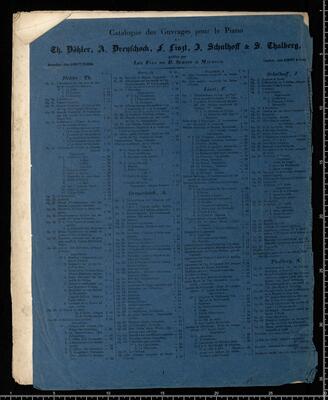 [title page:] à Madame la Comtesse | JULIE SAMOYLOFF | née Comtesse de Phalen. | Soirées Musicales | DE ROSSINI | transcrites pour le | PIANO | PAR | FRANÇOIS LISZT | N|o4966-67 Propriéte des Editeurs. Enregistré aux Archives de l'Union. Fr. | MAYENCE | chez les fils de B. Schott. | Bruxelles chez Schott frères. | 82 Montagne de la Cour. | Dépôl général de notre fonds de Musique | Leipzig C. F. Leede. Rotterdam W. F Lichtenauer, La regata veneziana pf Arr C