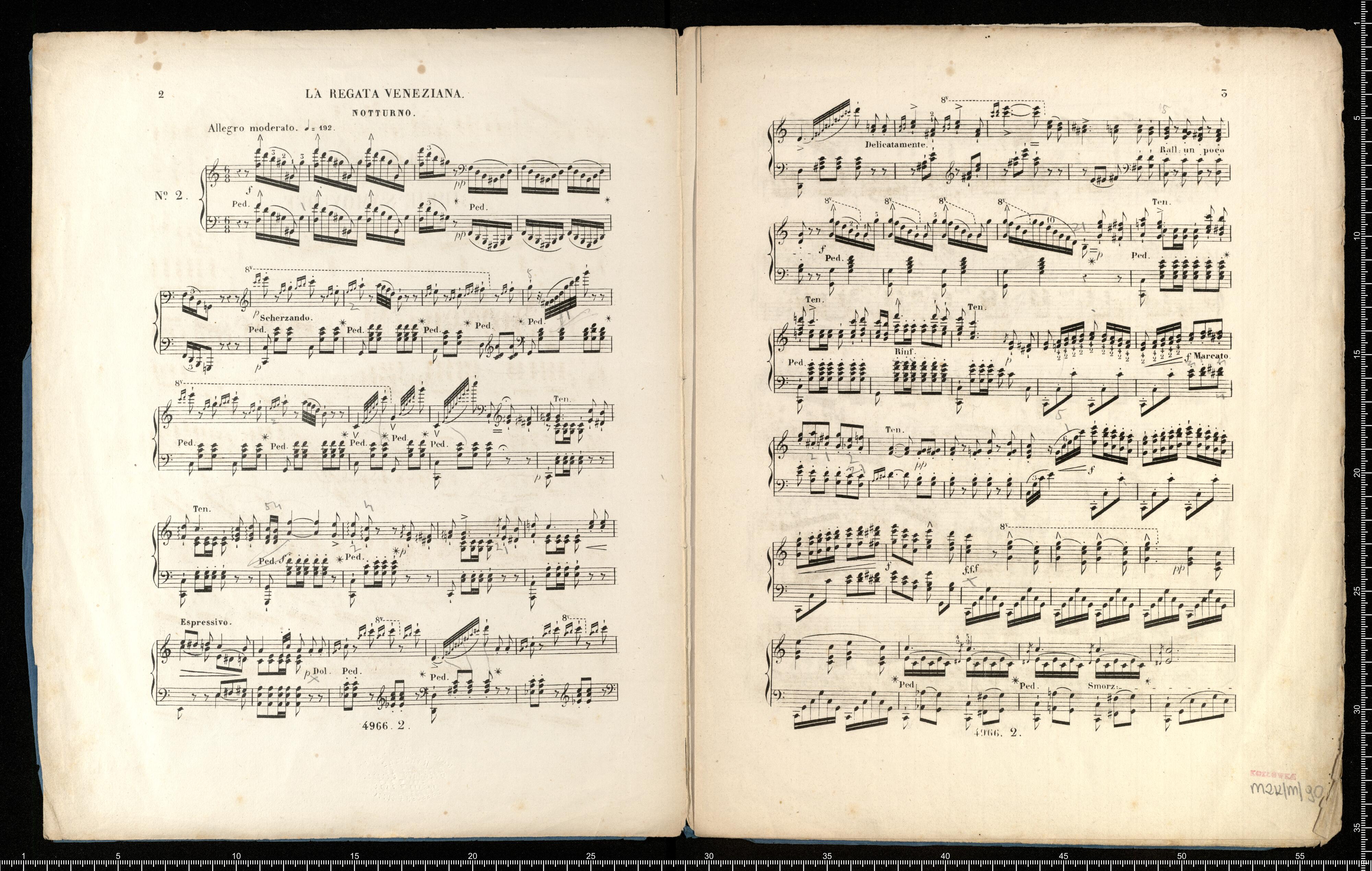 [title page:] à Madame la Comtesse | JULIE SAMOYLOFF | née Comtesse de Phalen. | Soirées Musicales | DE ROSSINI | transcrites pour le | PIANO | PAR | FRANÇOIS LISZT | N|o4966-67 Propriéte des Editeurs. Enregistré aux Archives de l'Union. Fr. | MAYENCE | chez les fils de B. Schott. | Bruxelles chez Schott frères. | 82 Montagne de la Cour. | Dépôl général de notre fonds de Musique | Leipzig C. F. Leede. Rotterdam W. F Lichtenauer
