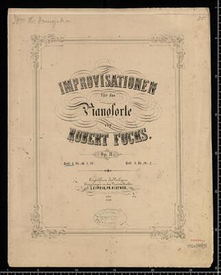 [title page:] IMPROVISATIONEN | für das | Pianoforte | von | ROBERT FUCHS. | Op. 11. | Heft 1. Pr. M 1. 50 | Heft 2. Pr. M. 2 | Eigenthum des Verlegers. | Eingetragen in das Vereins-Archiv. | LEIPZIG, FR. KISTNER. | (KK. Oesterr. goldene Medaille.) | 4307. | 4308, 5 Improvisationen pf. 11