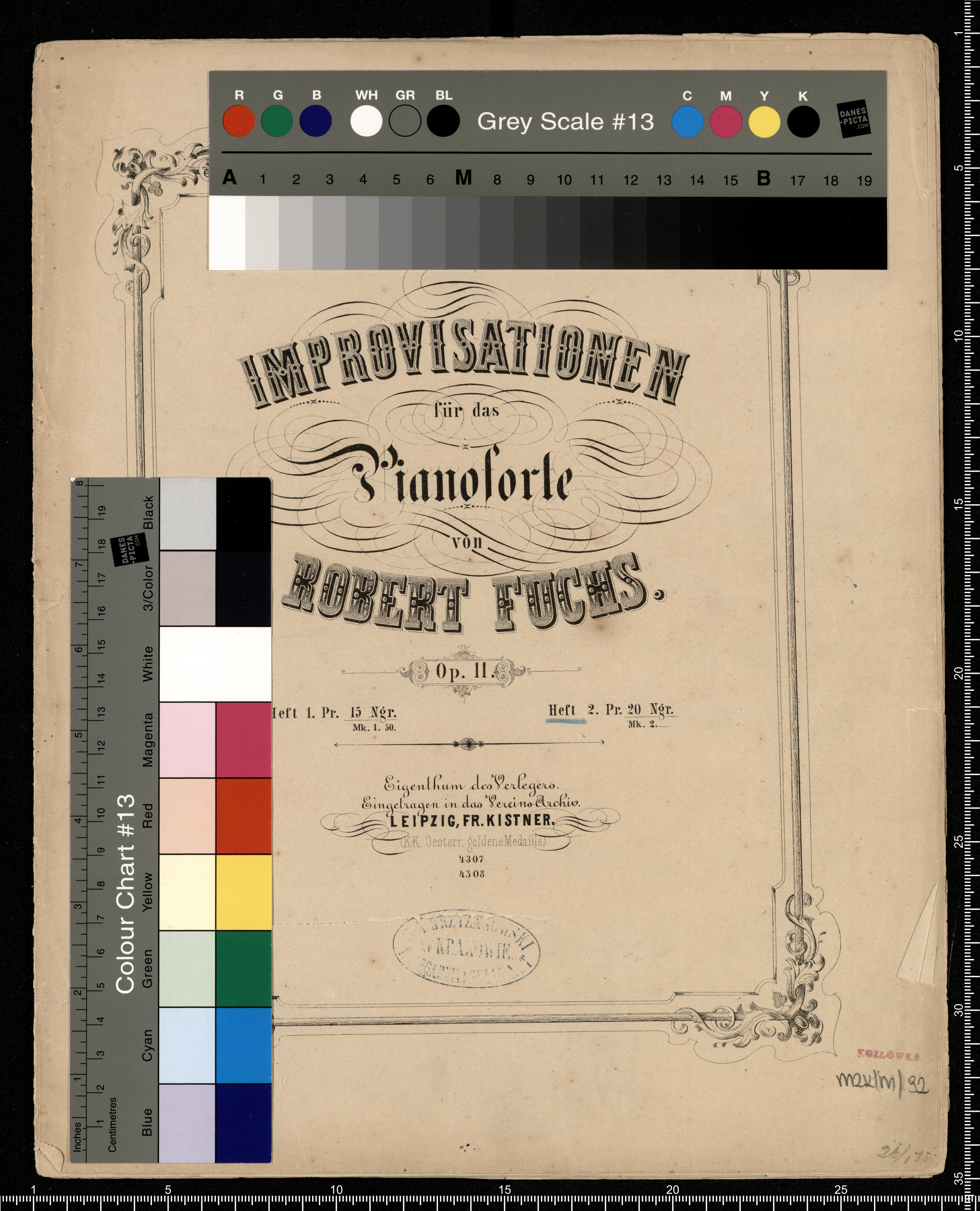 [title page:] IMPROVISATIONEN | für das | Pianoforte | von | ROBERT FUCHS. | Op. 11. | Heft 1. Pr. M 1. 50 | Heft 2. Pr. M. 2 | Eigenthum des Verlegers. | Eingetragen in das Vereins-Archiv. | LEIPZIG, FR. KISTNER. | (KK. Oesterr. goldene Medaille.) | 4307. | 4308