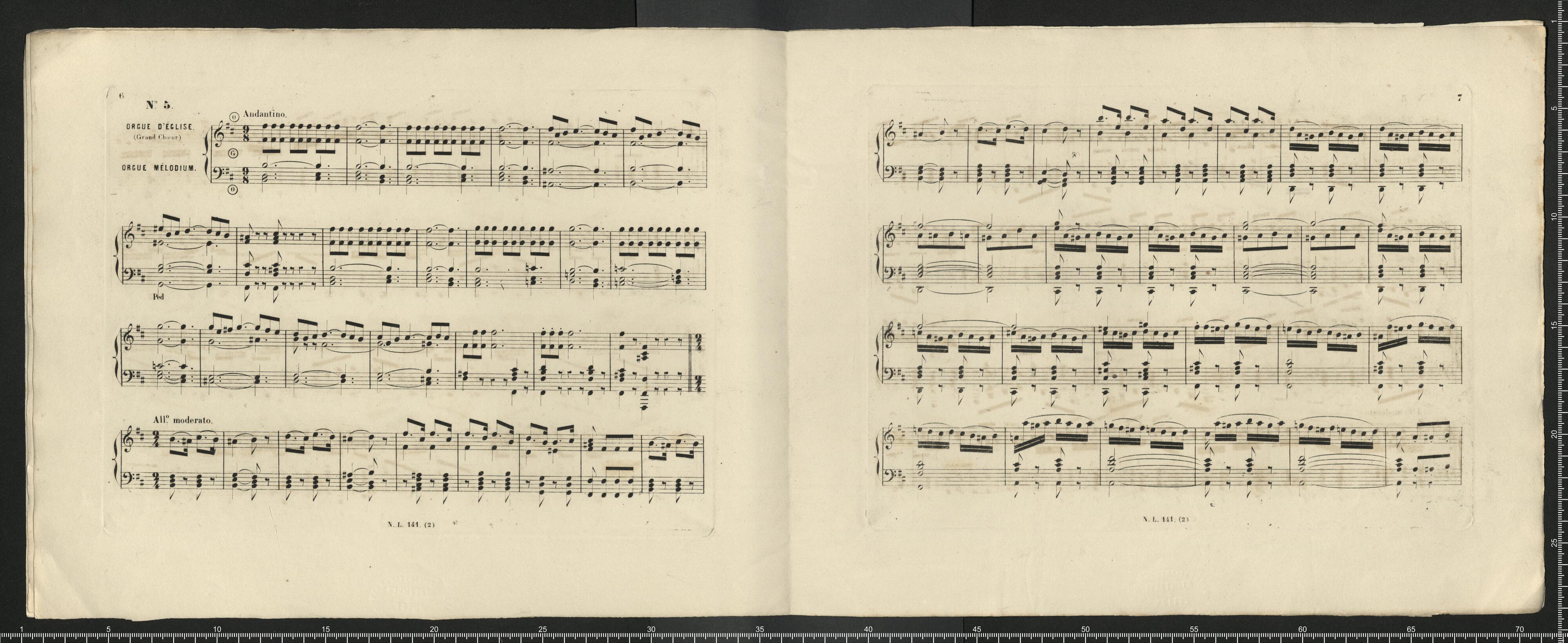 RÉPERTOIRE | DE MUSIQUE RELIGIEUSE | POUR ORGUE OU ORGUE EXPRESSIF | [first column:] 1. – FESSY (A.). Six Rentrées de Procession. | 2. – FESSY (A.). Trois grands Offertoires (1|r|e série). | 3. – FESSY (A.). Trois grands Offertoires (2|e série). | 4. – FALLOUARD. Douze pièces de différents caractères. | 5. – LORENZO (N.). Six morceaux faciles pur Rentrée de Proces- | sion, Offertoire, Élévation, Communion, | Sortie et Magnificat. | 6. – LORENZO (N.). Six morceaux faciles pur Rentrée de Proces- | sion, Offertoire, Élévation, Communion, | Sortie et Magnificat. | 7. – DARNAULT (B.). Douze morceaux, Antiennes Préludes, Rentrée | de Prosession, Offertoire, Élévation, Com- | munion et Sortie. | 8. – D'AUBEL (H. L.) Magnificat en fa du 6|e ton royal, avec interludes. | 9. – LEPRÉVOST (Alex.) Cinq morceaux de Rentrée, Procession, Offer- | toire, Élévation, Communion et Sortie. | 10. – DURAND (Aug.). Cinq morceaux pour Rentrée de Procession, | Offertoire, Élévation, Communion, Verset | et Sortie. | [second column:] 11. – LEFÉBURE-WÉLY. Six morceaux pour Rentrée de Procession, | Offertoire, Élévation, Communion, Verset | et Sortie. | 12. – D'AUBEL (H. L.) Deuxième Magnificat en fa, du 6|e ton royal, | avec interludes. | 13. – LE BEAU (Alf.) Cinq morceaux pour Rentrée de Procession, | Offertoire, Élévation et Sortie. | 14. – LORENZO (N.). Six morceaux faciles pour Rentrée de Proces- | sion, Offertoire, Élévation et trois Sorties. | 15. – BLONDEL (Ch.) Cinq hymnes, avec interludes. | 16. – BLONDEL (Ch.) Te Deum, avec interludes (|1). | 17. – DURAND (Aug.). Cinq morceaux pour Rentrée de Procession, | Offertoire, Élévation, Communion, Sortie (|2). | 18. – DURAND (Aug.). Cinq morceaux pour Rentrée de Procession, | Offertoire, Élévation, Communion, Sortie. | 19. – LEPRÉVOST (Alex.) Six morceaux composés pour la célébration | des obsèques ou un service non chanté : | 1|o avant la Messe, 2|o au commencement | de la Messe, 3|o apres l'Épitre, 4|o Offer- | toire, 5|o Élévation, 6|o Sortie. | 20. – BENOIST et GOUNOD (Ch.) Trois Offertoires. [end of colums] | (1) Les 15 préludes peuvent servir à deux Magnificats. – (2) Livraison pour le temps pascal. | [first column:] Chaque livraison, prix : 7 fr. 50 | Propriété exclusive pour tout pays. | [second column:] PARIS | LE BEAU, éditeur de musique | 11, RUE NEUAE-SAINT-AUGUSTIN, 11 | [third column:] La collection, prix net : 30 fr. | Déposé selon les traités internationaux. [end of columns] | [by pencil:] 1fr 70 =