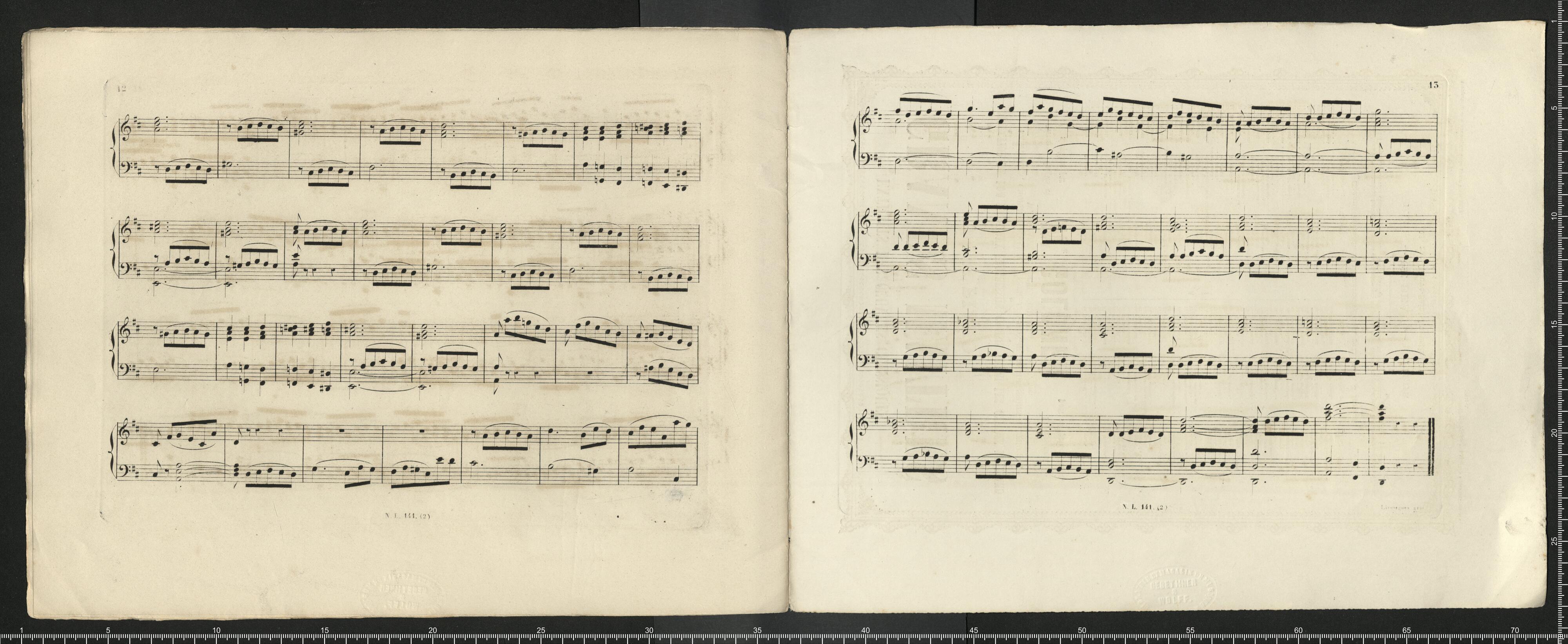 RÉPERTOIRE | DE MUSIQUE RELIGIEUSE | POUR ORGUE OU ORGUE EXPRESSIF | [first column:] 1. – FESSY (A.). Six Rentrées de Procession. | 2. – FESSY (A.). Trois grands Offertoires (1|r|e série). | 3. – FESSY (A.). Trois grands Offertoires (2|e série). | 4. – FALLOUARD. Douze pièces de différents caractères. | 5. – LORENZO (N.). Six morceaux faciles pur Rentrée de Proces- | sion, Offertoire, Élévation, Communion, | Sortie et Magnificat. | 6. – LORENZO (N.). Six morceaux faciles pur Rentrée de Proces- | sion, Offertoire, Élévation, Communion, | Sortie et Magnificat. | 7. – DARNAULT (B.). Douze morceaux, Antiennes Préludes, Rentrée | de Prosession, Offertoire, Élévation, Com- | munion et Sortie. | 8. – D'AUBEL (H. L.) Magnificat en fa du 6|e ton royal, avec interludes. | 9. – LEPRÉVOST (Alex.) Cinq morceaux de Rentrée, Procession, Offer- | toire, Élévation, Communion et Sortie. | 10. – DURAND (Aug.). Cinq morceaux pour Rentrée de Procession, | Offertoire, Élévation, Communion, Verset | et Sortie. | [second column:] 11. – LEFÉBURE-WÉLY. Six morceaux pour Rentrée de Procession, | Offertoire, Élévation, Communion, Verset | et Sortie. | 12. – D'AUBEL (H. L.) Deuxième Magnificat en fa, du 6|e ton royal, | avec interludes. | 13. – LE BEAU (Alf.) Cinq morceaux pour Rentrée de Procession, | Offertoire, Élévation et Sortie. | 14. – LORENZO (N.). Six morceaux faciles pour Rentrée de Proces- | sion, Offertoire, Élévation et trois Sorties. | 15. – BLONDEL (Ch.) Cinq hymnes, avec interludes. | 16. – BLONDEL (Ch.) Te Deum, avec interludes (|1). | 17. – DURAND (Aug.). Cinq morceaux pour Rentrée de Procession, | Offertoire, Élévation, Communion, Sortie (|2). | 18. – DURAND (Aug.). Cinq morceaux pour Rentrée de Procession, | Offertoire, Élévation, Communion, Sortie. | 19. – LEPRÉVOST (Alex.) Six morceaux composés pour la célébration | des obsèques ou un service non chanté : | 1|o avant la Messe, 2|o au commencement | de la Messe, 3|o apres l'Épitre, 4|o Offer- | toire, 5|o Élévation, 6|o Sortie. | 20. – BENOIST et GOUNOD (Ch.) Trois Offertoires. [end of colums] | (1) Les 15 préludes peuvent servir à deux Magnificats. – (2) Livraison pour le temps pascal. | [first column:] Chaque livraison, prix : 7 fr. 50 | Propriété exclusive pour tout pays. | [second column:] PARIS | LE BEAU, éditeur de musique | 11, RUE NEUAE-SAINT-AUGUSTIN, 11 | [third column:] La collection, prix net : 30 fr. | Déposé selon les traités internationaux. [end of columns] | [by pencil:] 1fr 70 =