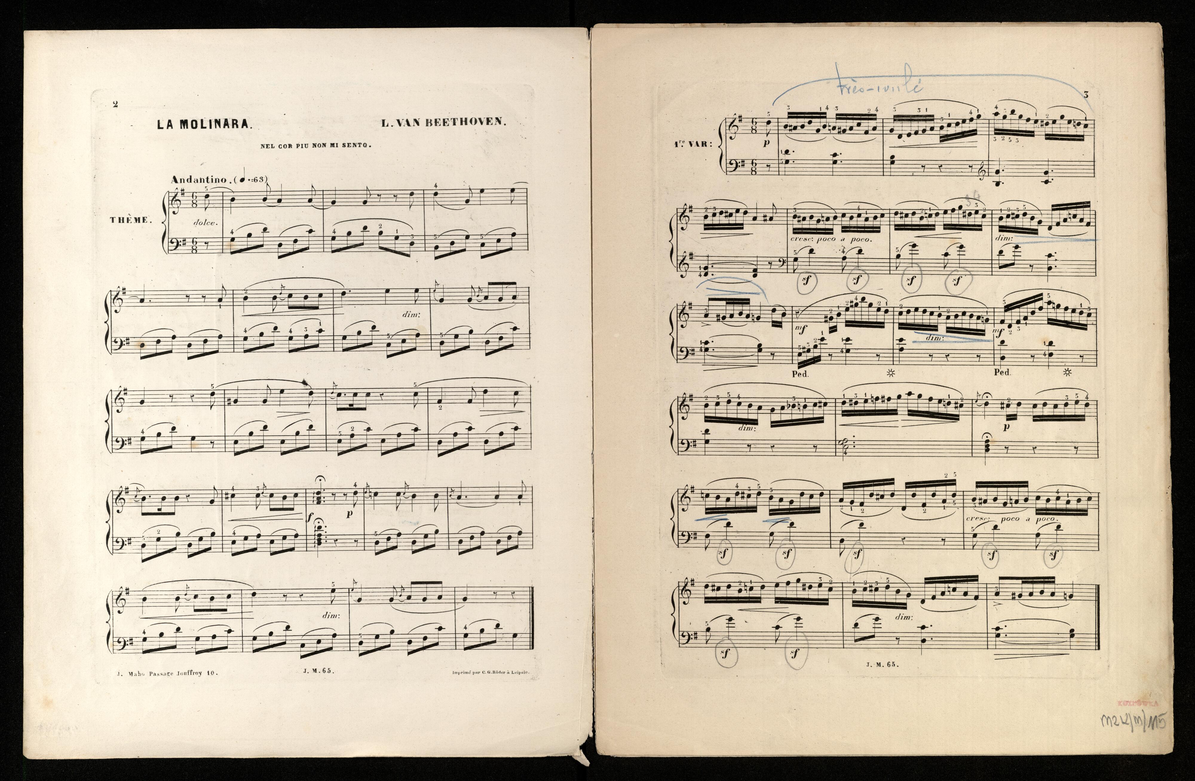 LES | CLASSIQUES DU PIANO | ŒUVRES CHOISIES DES GRANDS MAITRS | LA | MOLINARA | Thême varié | PAR | BEETHOVEN. | Op. 9 N°.1 Prix 5. | A.V. | REVUES | DOIGTÉES ET CLASSÉES PAR ORDRE DE DIFFICULTÉ | PAR | F. LE COUPPEY | PROFFESEUR DE PIANO AU CONSERVATOIRE | PARIS J. MAHO., ÉDITEUR | 25 FAUBOURG SAINT-HONORÉ 25
