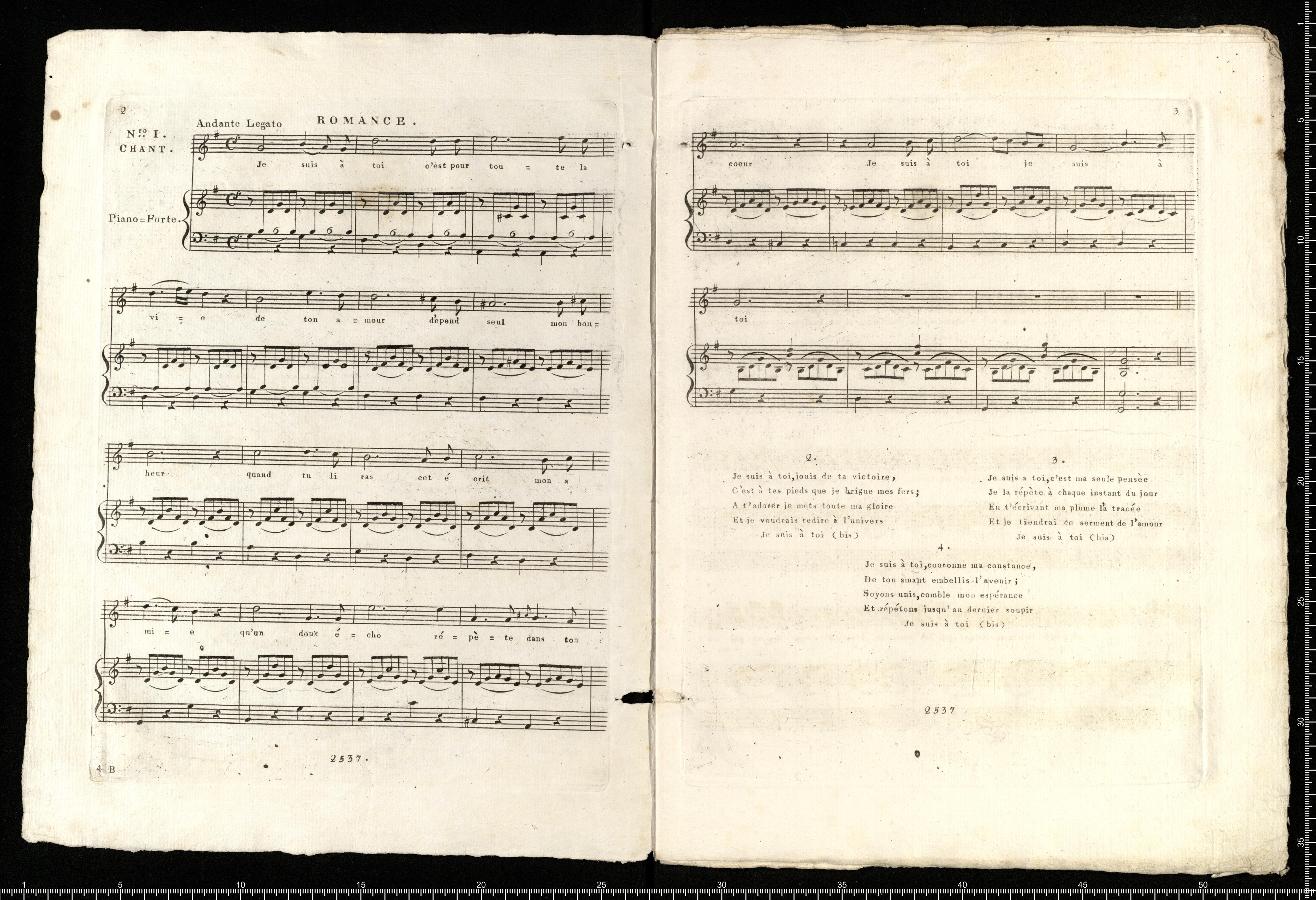 ROMANCES ARIETTES et DUOS | Français et Italiens | avec accompagnement de | Piano=Forté. | Dédiés | À MADAME LA COMTESSE | d'Esterhazy | NÉE MARQUISE DE ROISIN. | Musique | d'AUGUSTe PANSERON | Pensionaire de S.M. le Roi de France, | Membre de la Société philharmonique de Bologne. | Oeuvre I(re). | à Vienne chez Artaria et Comp. | N°. 2537