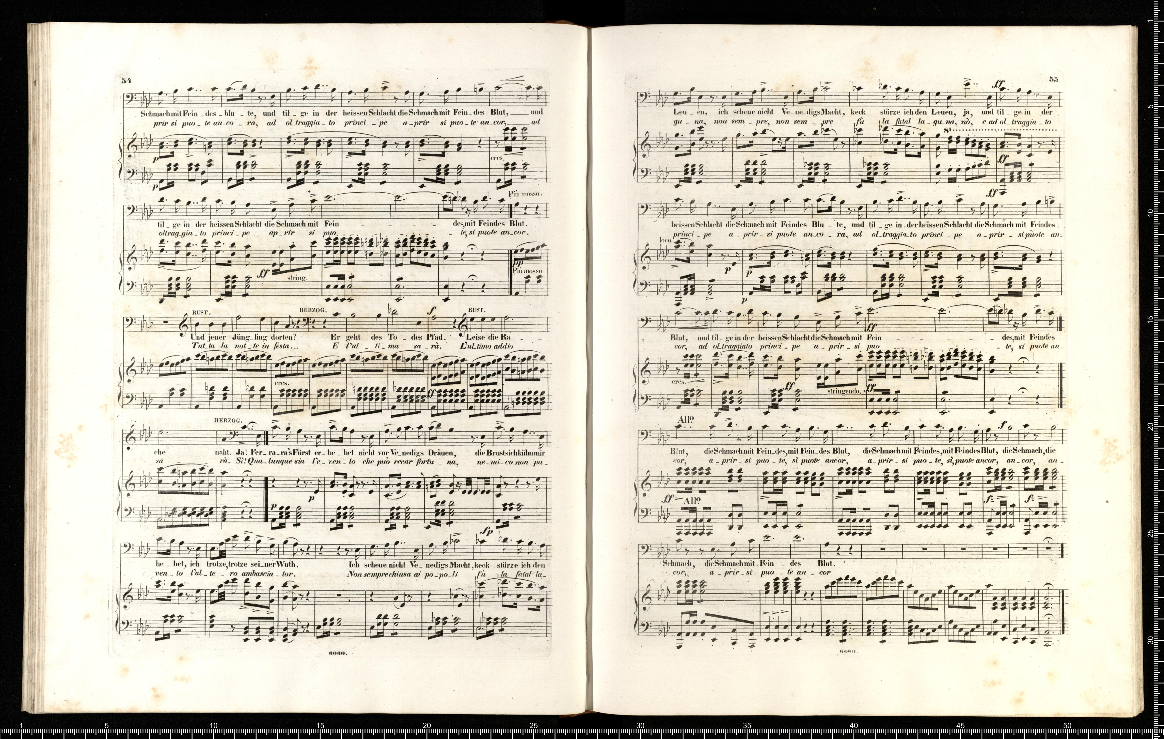 Lucrezia Borgia | Oper in 3 Acten | von | G. DONIZETTI. | Vollständiger Klavierauszug | mit deutschem und italienischem Texte. | Eigenthum der Verleger. | PR. 6 THLR. | Leipzig, bei Breitkopf & Härtel. | Mailand, bei J. Ricordi. | Eingetragen in das Vereins Archiv. | 6060 | Fr. Kr _ r