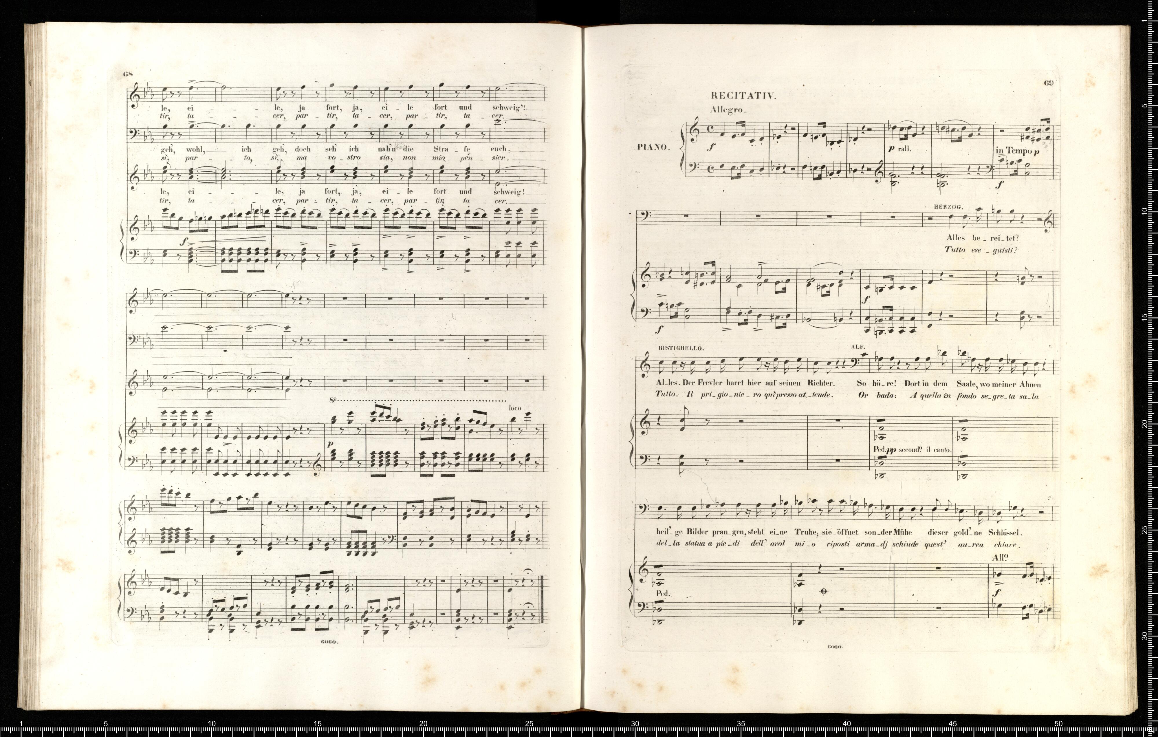 Lucrezia Borgia | Oper in 3 Acten | von | G. DONIZETTI. | Vollständiger Klavierauszug | mit deutschem und italienischem Texte. | Eigenthum der Verleger. | PR. 6 THLR. | Leipzig, bei Breitkopf & Härtel. | Mailand, bei J. Ricordi. | Eingetragen in das Vereins Archiv. | 6060 | Fr. Kr _ r