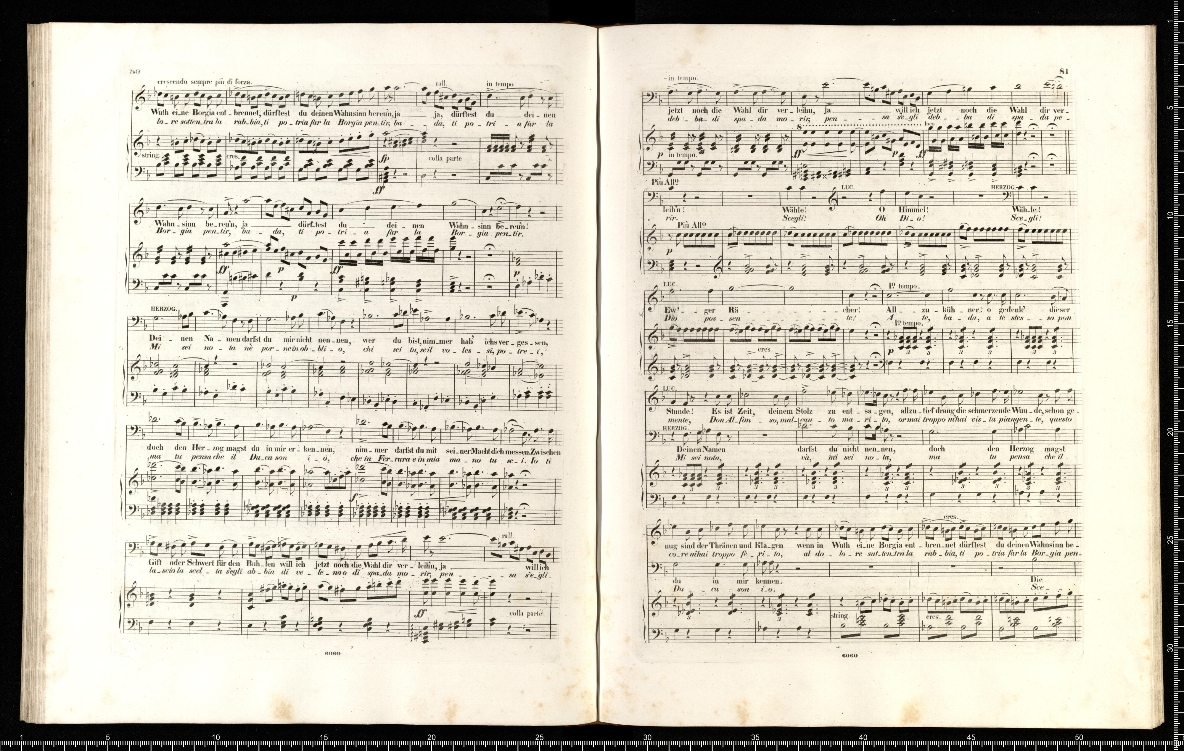 Lucrezia Borgia | Oper in 3 Acten | von | G. DONIZETTI. | Vollständiger Klavierauszug | mit deutschem und italienischem Texte. | Eigenthum der Verleger. | PR. 6 THLR. | Leipzig, bei Breitkopf & Härtel. | Mailand, bei J. Ricordi. | Eingetragen in das Vereins Archiv. | 6060 | Fr. Kr _ r