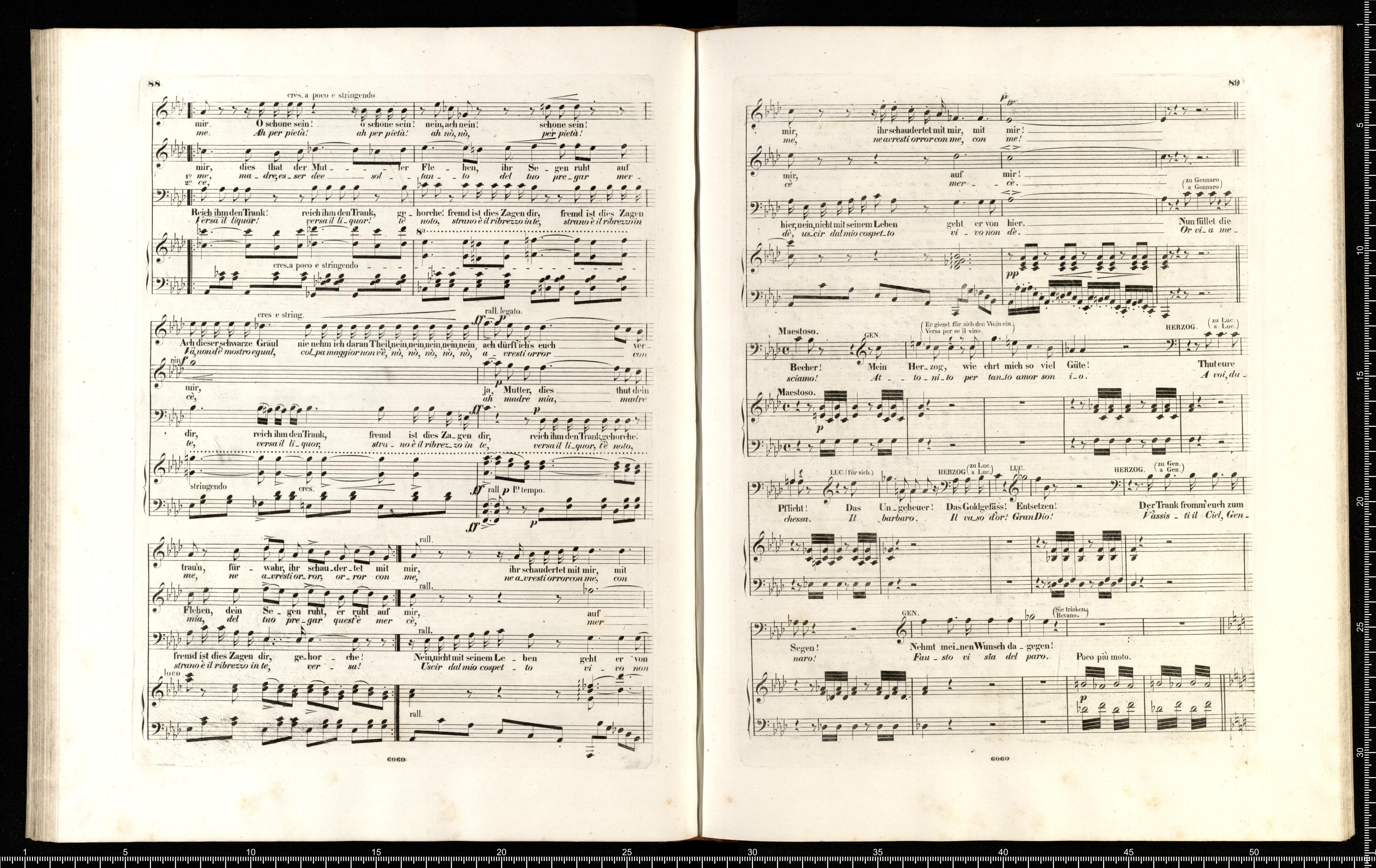 Lucrezia Borgia | Oper in 3 Acten | von | G. DONIZETTI. | Vollständiger Klavierauszug | mit deutschem und italienischem Texte. | Eigenthum der Verleger. | PR. 6 THLR. | Leipzig, bei Breitkopf & Härtel. | Mailand, bei J. Ricordi. | Eingetragen in das Vereins Archiv. | 6060 | Fr. Kr _ r
