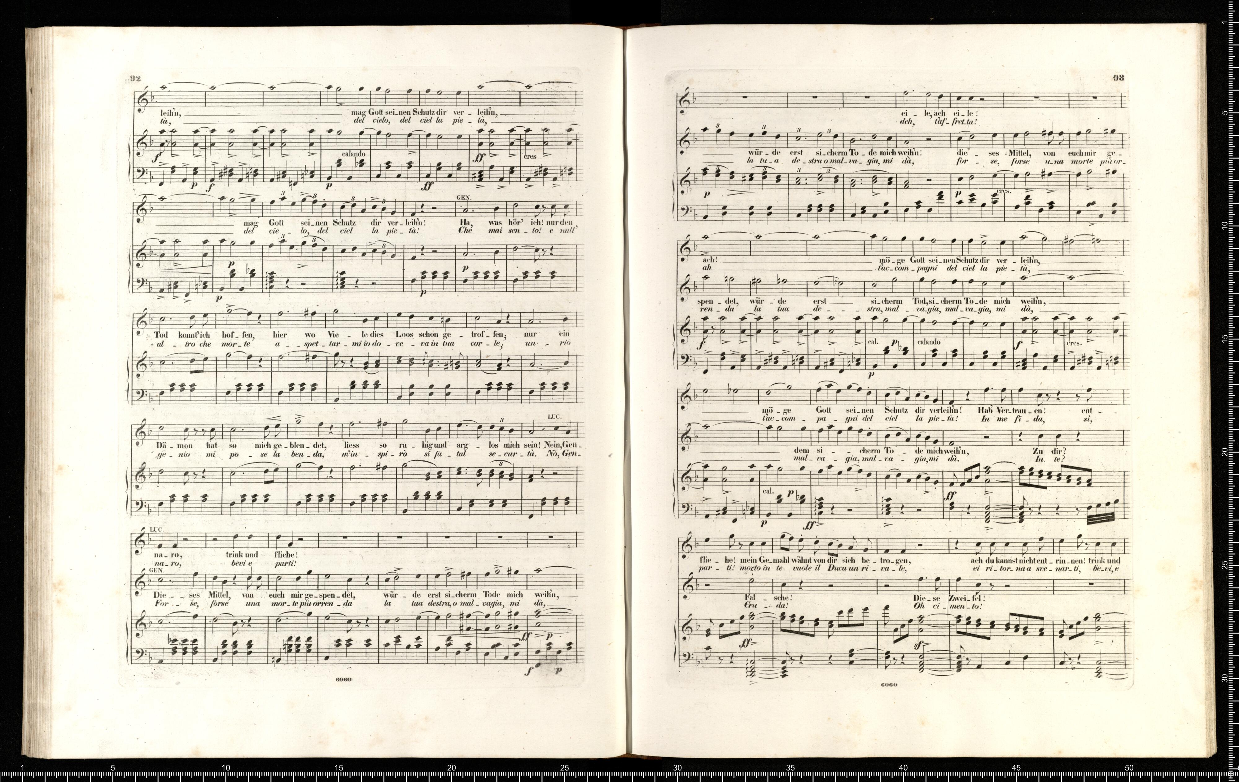 Lucrezia Borgia | Oper in 3 Acten | von | G. DONIZETTI. | Vollständiger Klavierauszug | mit deutschem und italienischem Texte. | Eigenthum der Verleger. | PR. 6 THLR. | Leipzig, bei Breitkopf & Härtel. | Mailand, bei J. Ricordi. | Eingetragen in das Vereins Archiv. | 6060 | Fr. Kr _ r