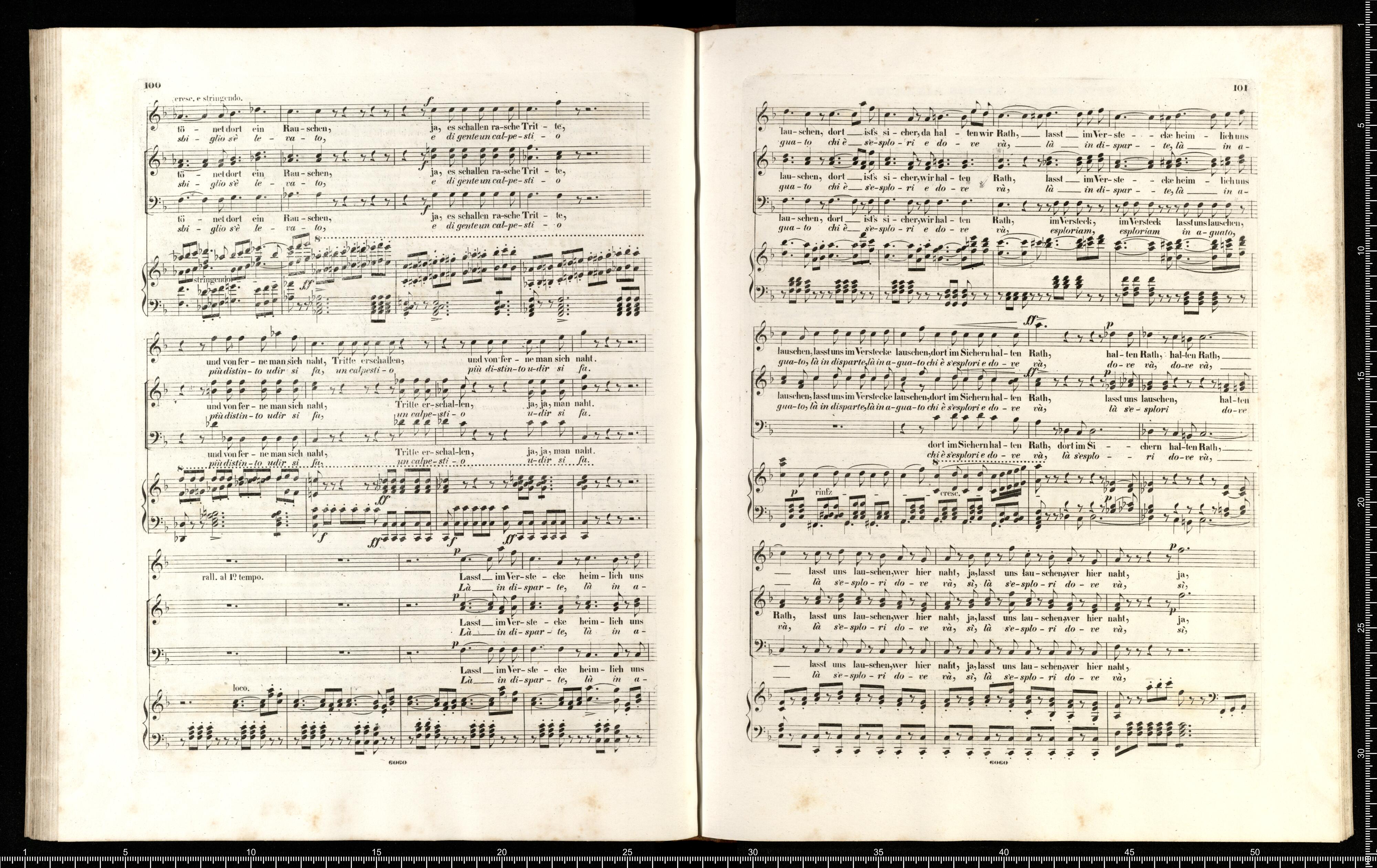 Lucrezia Borgia | Oper in 3 Acten | von | G. DONIZETTI. | Vollständiger Klavierauszug | mit deutschem und italienischem Texte. | Eigenthum der Verleger. | PR. 6 THLR. | Leipzig, bei Breitkopf & Härtel. | Mailand, bei J. Ricordi. | Eingetragen in das Vereins Archiv. | 6060 | Fr. Kr _ r