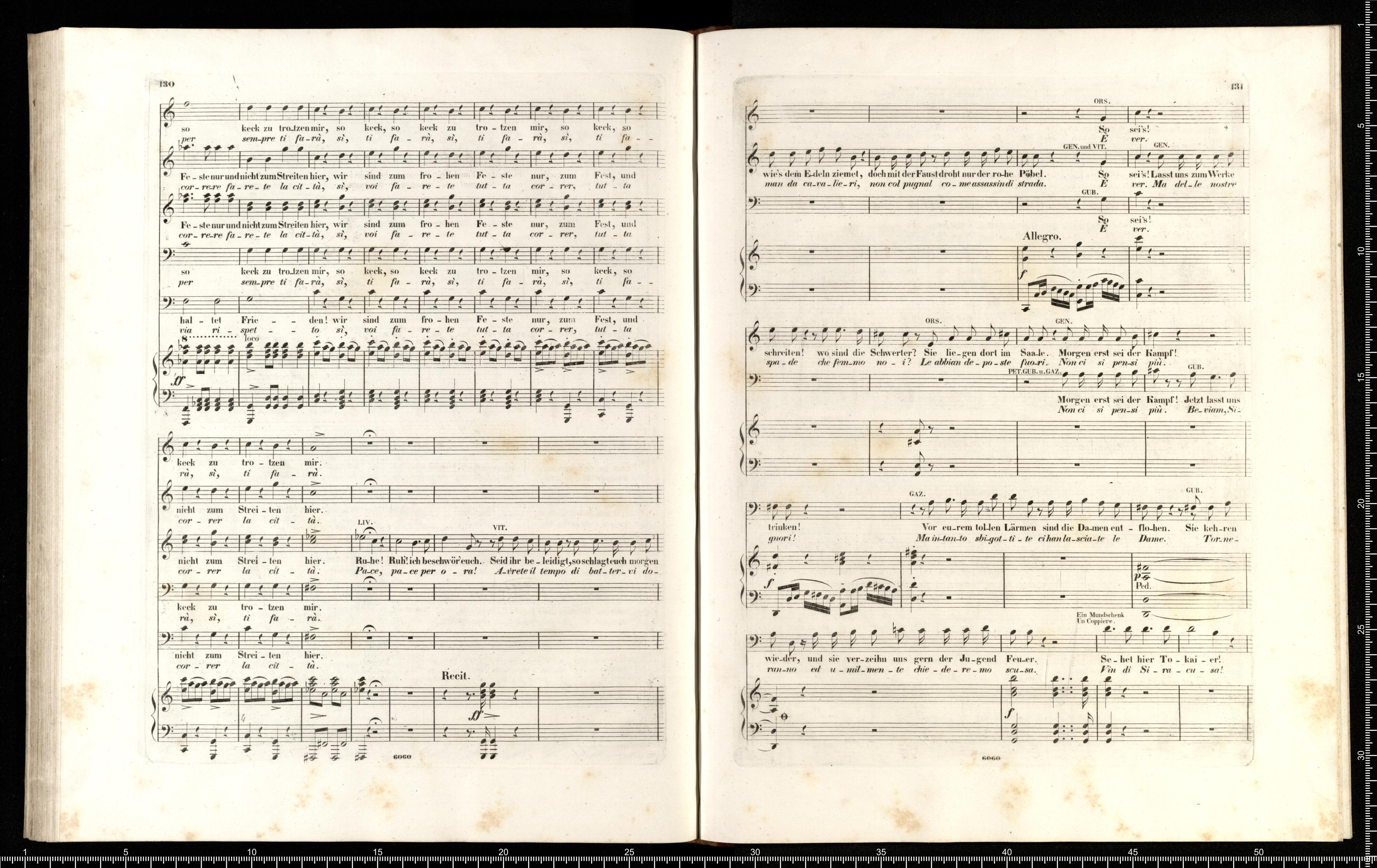Lucrezia Borgia | Oper in 3 Acten | von | G. DONIZETTI. | Vollständiger Klavierauszug | mit deutschem und italienischem Texte. | Eigenthum der Verleger. | PR. 6 THLR. | Leipzig, bei Breitkopf & Härtel. | Mailand, bei J. Ricordi. | Eingetragen in das Vereins Archiv. | 6060 | Fr. Kr _ r