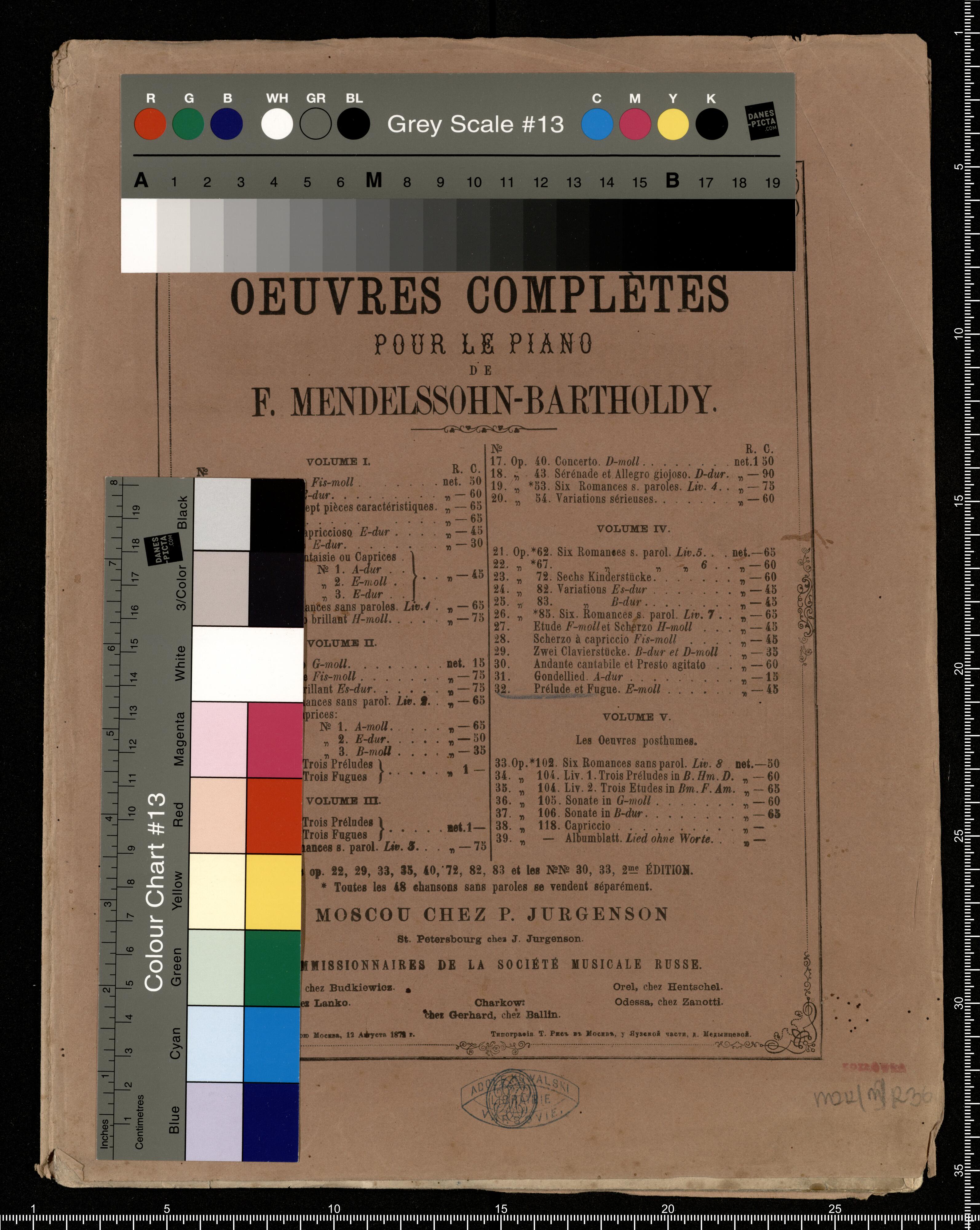 COMPOSITIONS |MODERNES ET BRILLANTES | POUR LE PIANO | 3|m|e SUITE. | [list of compositions in two column] | Moscou chez A. Gutheil | Founisseur de la cour IMPÉRIALE et des Theatres Impériaux, | au Pont des Marechaux, 16. | St-Petersbourg, chez A. Johanses. Perspective de Nevsky N|o 63 Kieff, chez L. Jdzikowsky. | Varsovie, chez Gebethner & Wolff