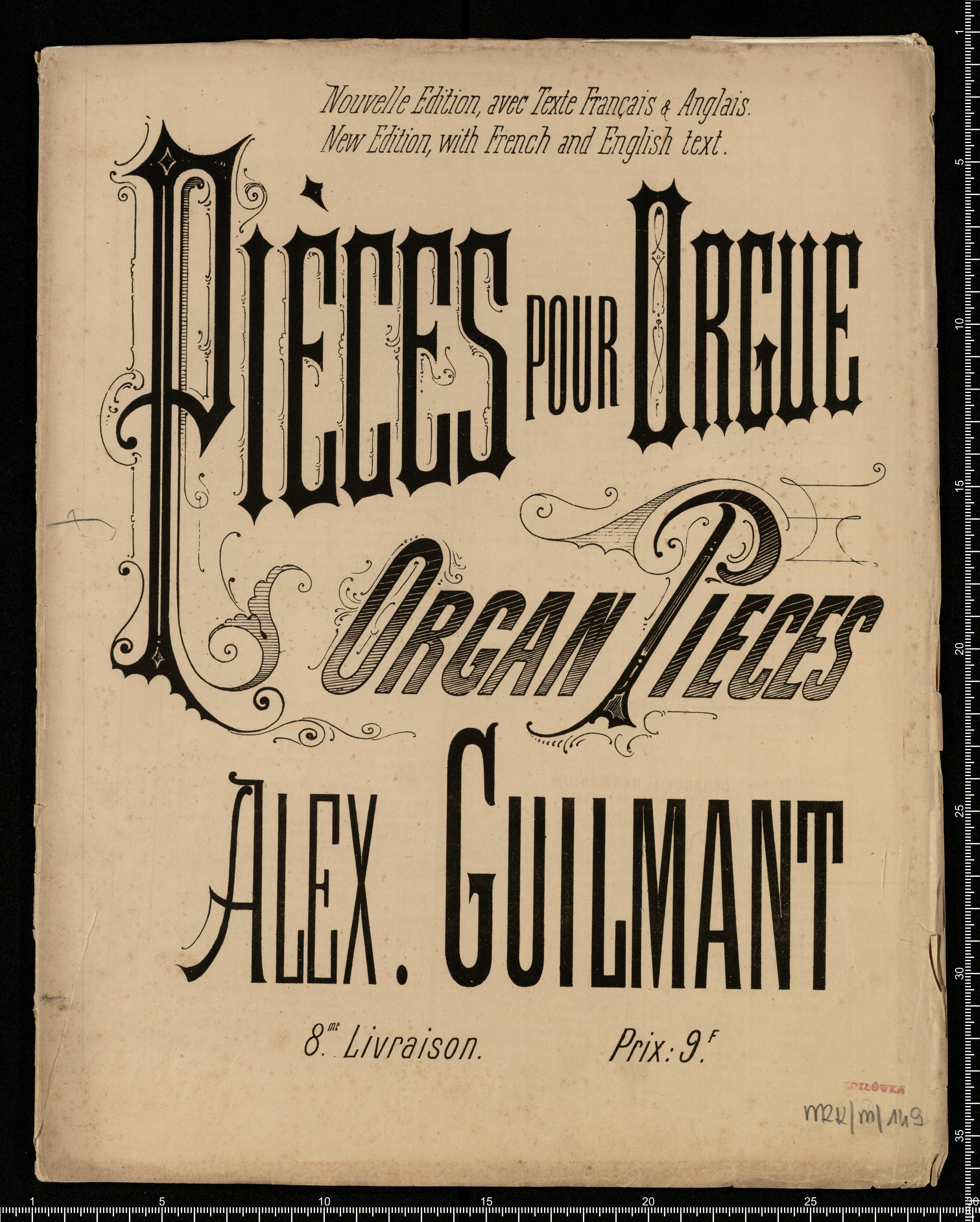 Nouvelle Edition, avec Texte Français & Anglais. | New Edition, with French and English text. | Pivces pour Orgue | Organ Pieces | Alex.Guilmant | 8(me). Livraison. Prix: 9. (F)